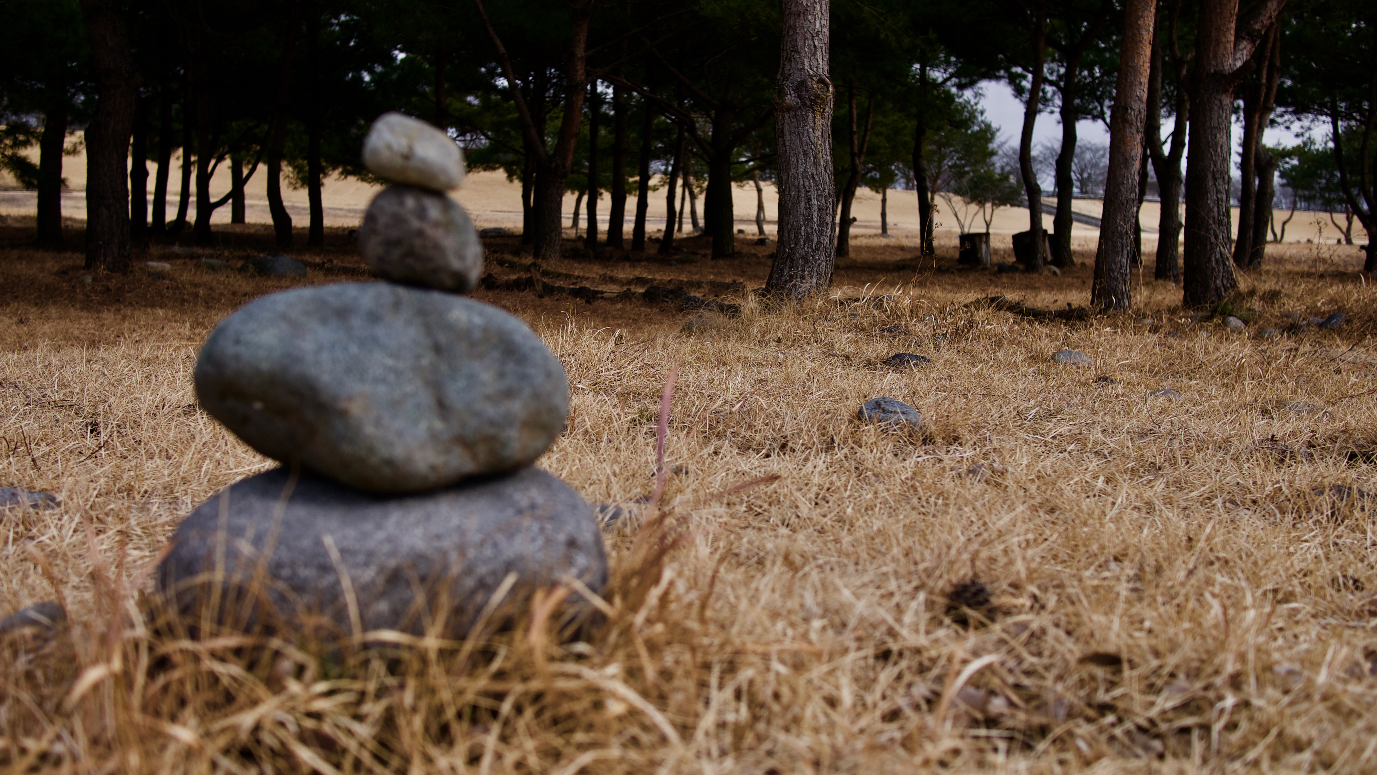 Depending on who you ask, these little stone cairns you can find all over Japan are either memorials to people who have passed on, a form of zen meditation, a way to pass the time, or all of the above. I wish I had gotten a better picture; you think I'd know better than to trust my auto-focus. Ah well. Maybe next week.