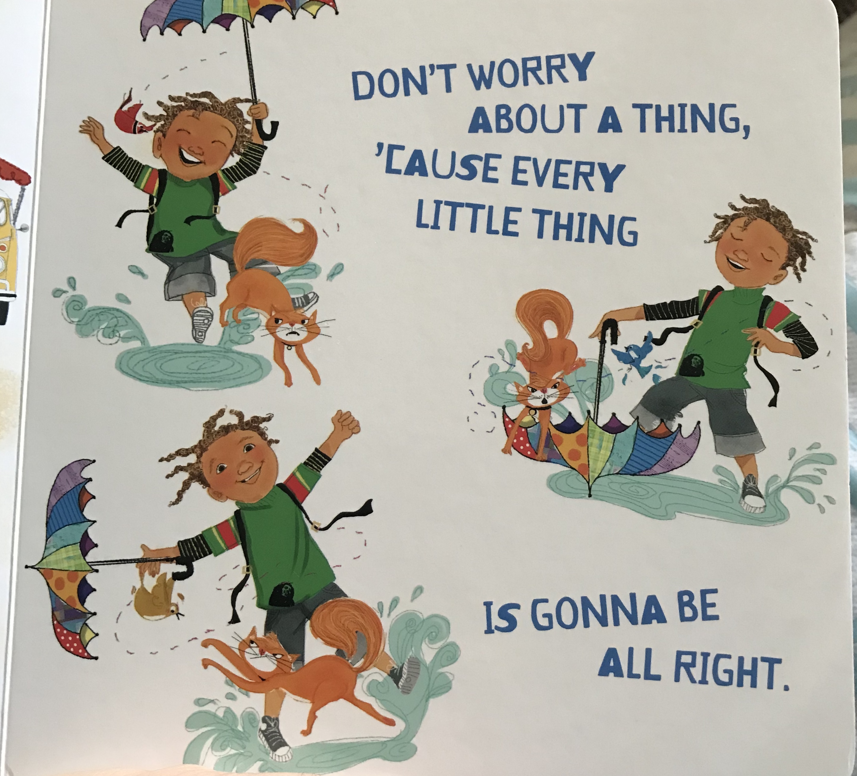 My favorite of the books he brought is my son's "Every Little Thing" which is a book based on the song "Three Little Birds" by Bob Marley. His daughter, Cedella Marley, adapted the song into a children's book. She did a beautiful job.