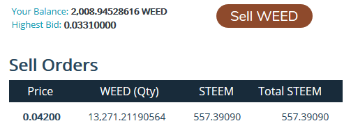 Been looking at the sell orders seeing that huge chunk of Weedcash that is slowly going down, last week when i brought 2000 there were orders before it which meant i could not help bring the total down.