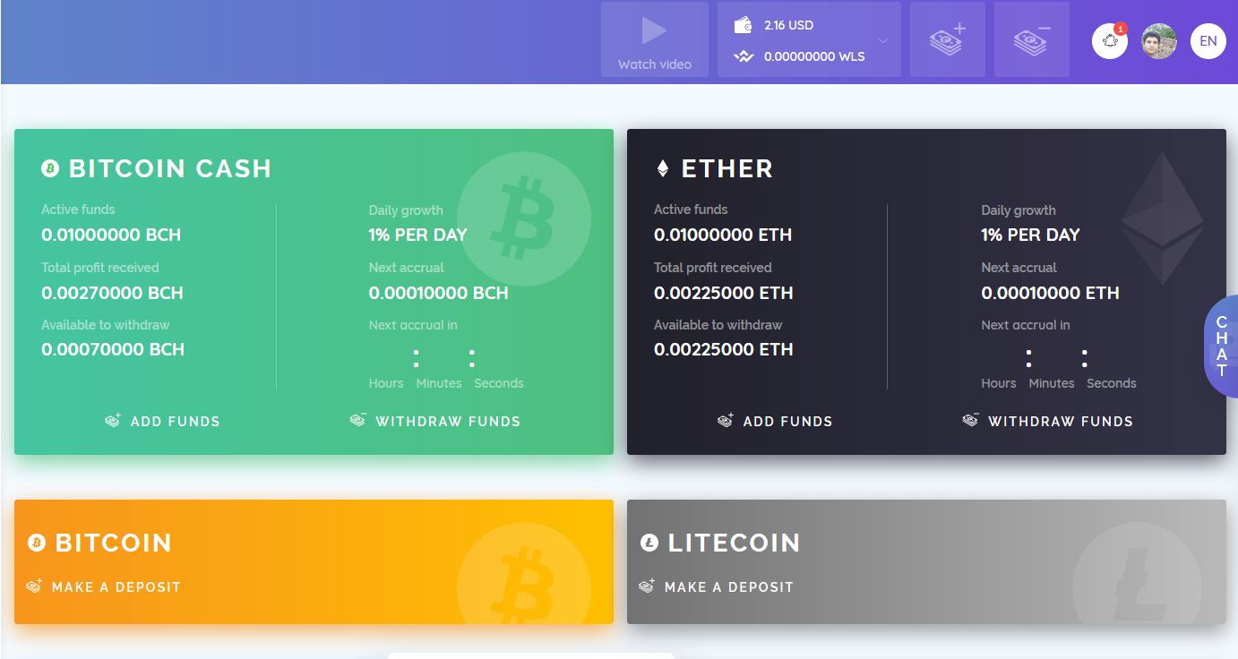 The investor transfers funds to WLS Company. They acquire real estate and rent it out. And they pay part of the profit in the form of daily dividends, amounting to 1% of the investment