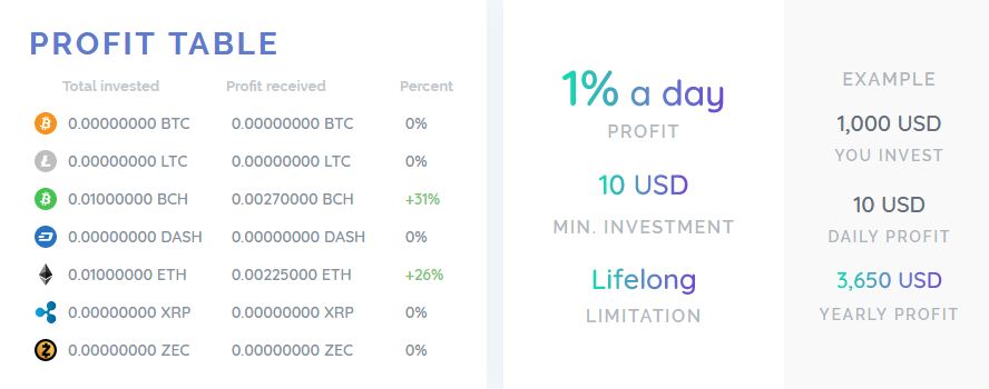 you gonna receive 1% daily and .5% on weekends and the profit is for a lifetime never ending.