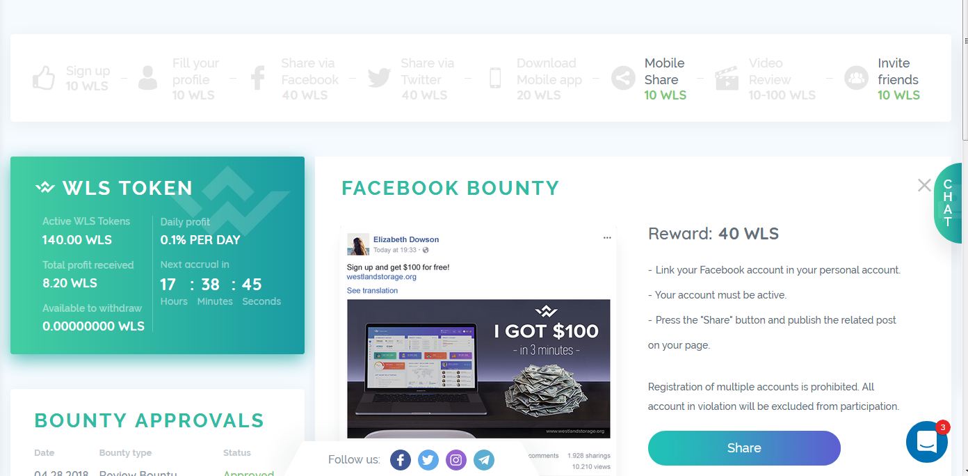 WLS is the kind of a currency of Westland storage in which you gonna get bay completing so easy task that gonna take only 5 minutes to complete link to join https://westlandstorage.com/bounty?p=37005