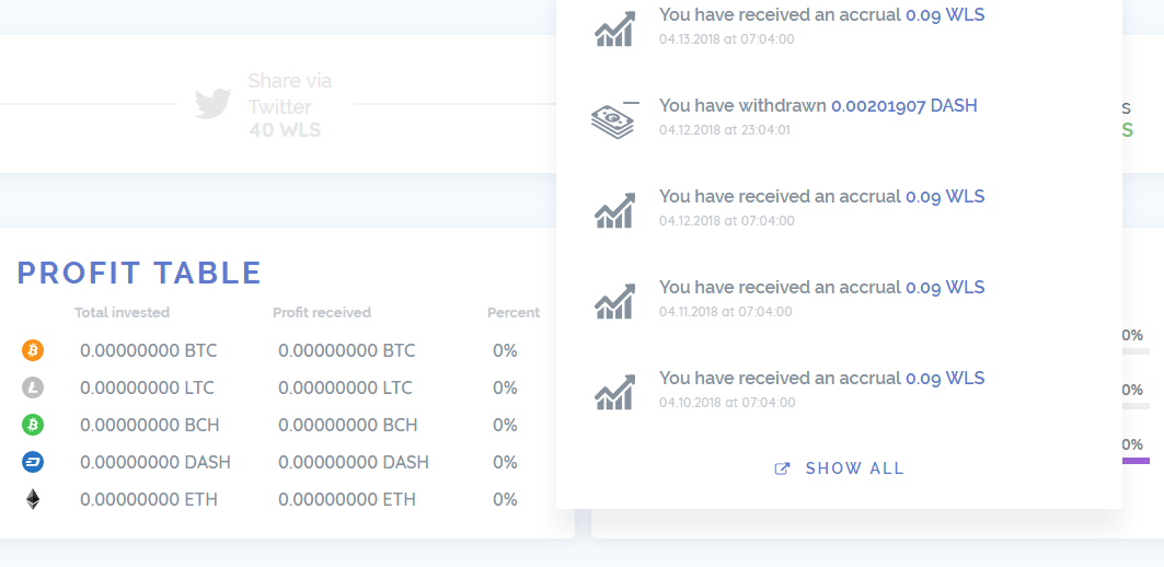 The investor transfers funds to WLS Company. We acquire real estate and rent it out. And the we pay part of the profit in the form of daily dividends, amounting to 1% of the investment.