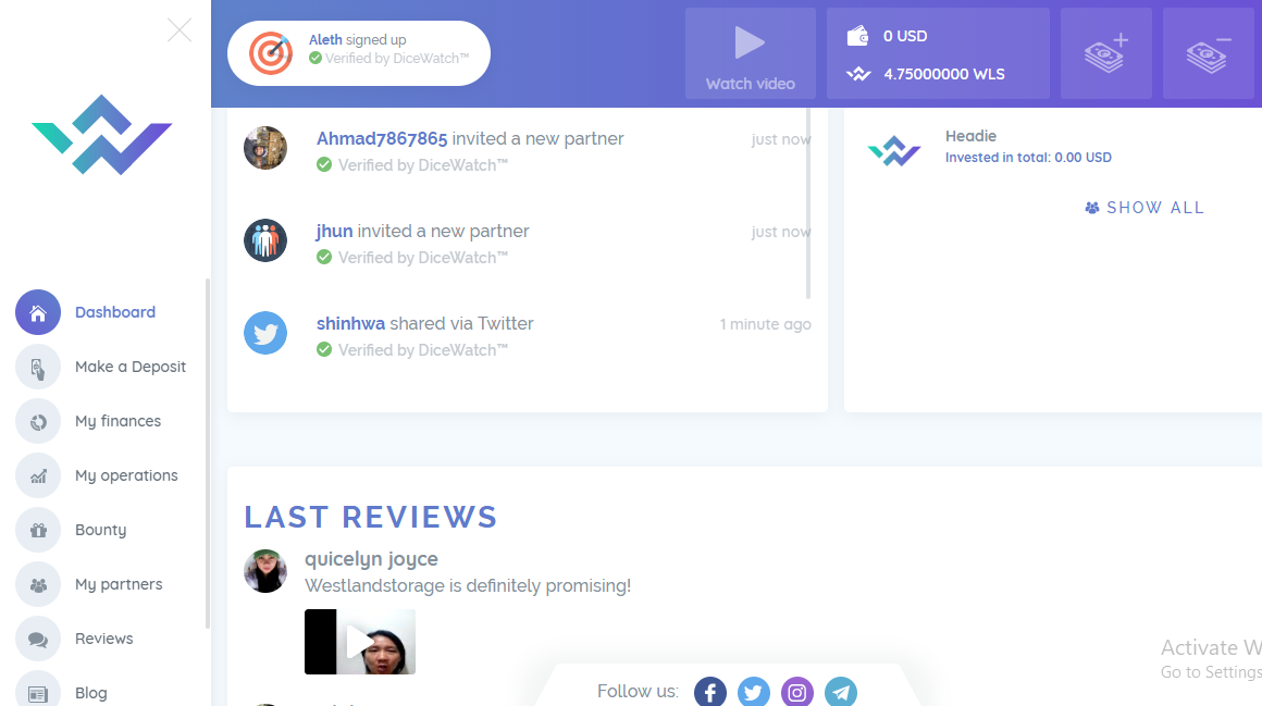 The platform is developed to use as a new investment platform for real estate companies. Westland Storage is here to give you the opportunity to become a part share owner in some of the nicest real estate properties all over the world. It also gives you the ability to buy land by square feet of real estate as well as get a daily profit from the leases made.