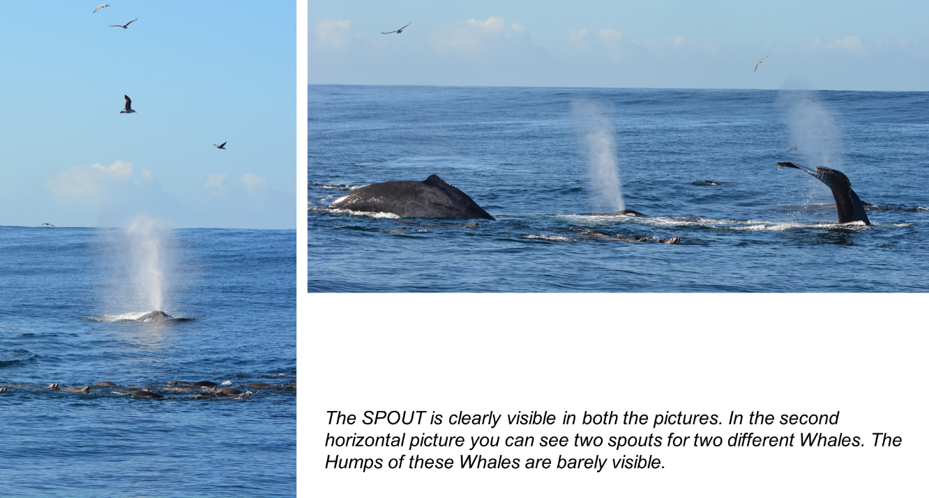 Humpback Whales live at the surface of the Ocean. Both in the open sea as well as shallow coastline waters. When a whale comes to the surface after a dive, it breathes out the “old” air quickly, all in one breath. This air rises up like a fountain and is called a ‘Whale Spout’. But it is not a fountain of water. Instead, it is a stream of warm air being forced out of the whale's lungs, aka the Whale's breath. It was a sight to see Whale Spouts all over and so many times.