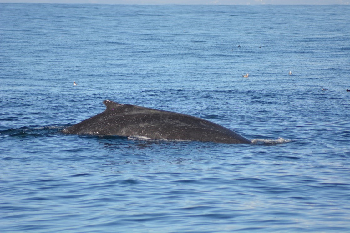 Busy in soaking in all the information, the great action around us and the strong air flow standing outside, we never realized that it had been almost an hour since we boarded the vessel. Until the Captain announced over the PA system that we are now in the zone where Whales are spotted and we should be on the lookout. Our wait was not very long. We spotted the contours of a Humpback Whale and all were very excited.