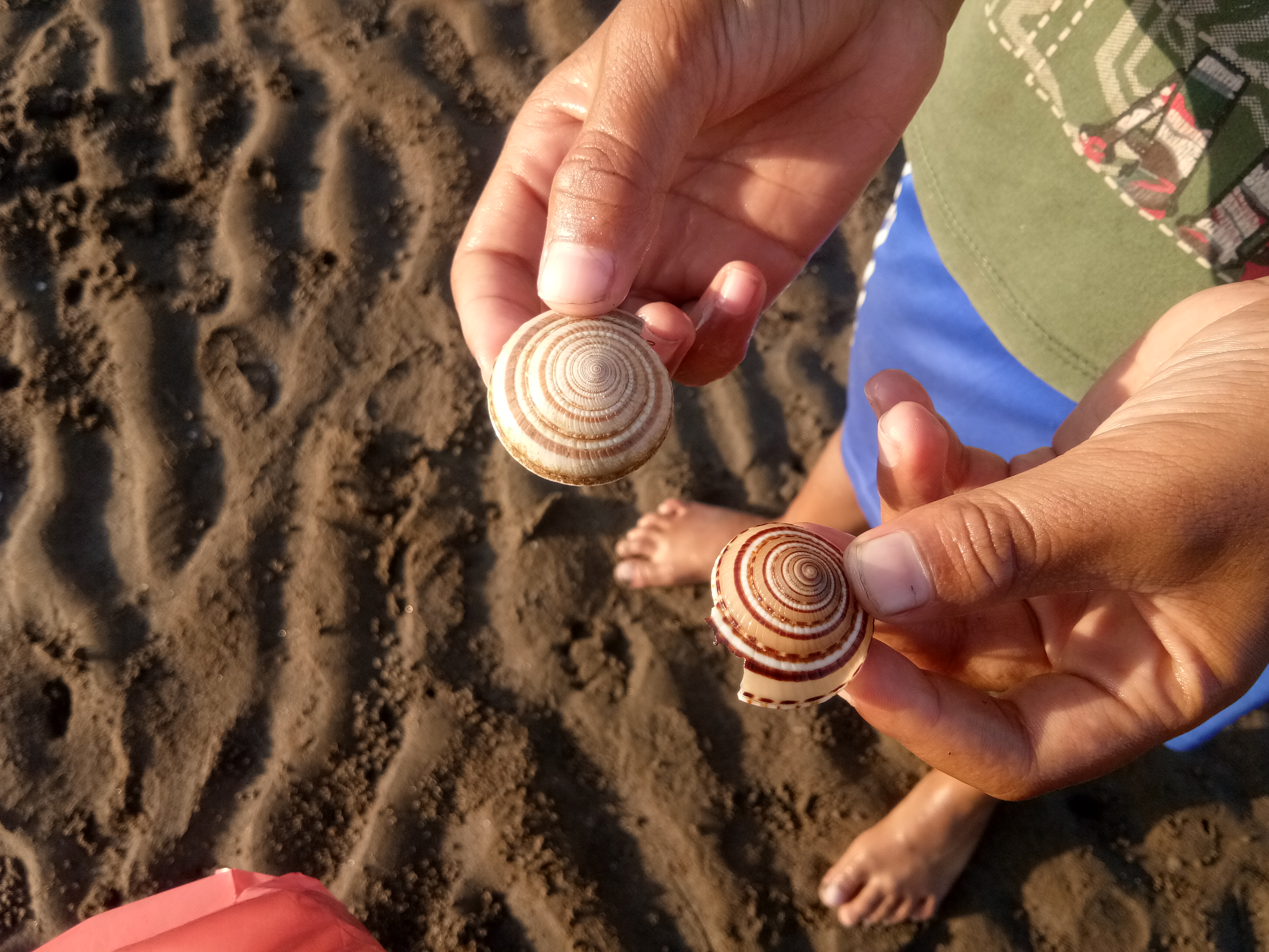 Anak-anak nampak terkesima dengan indah nya motif di cangkang keong laut.