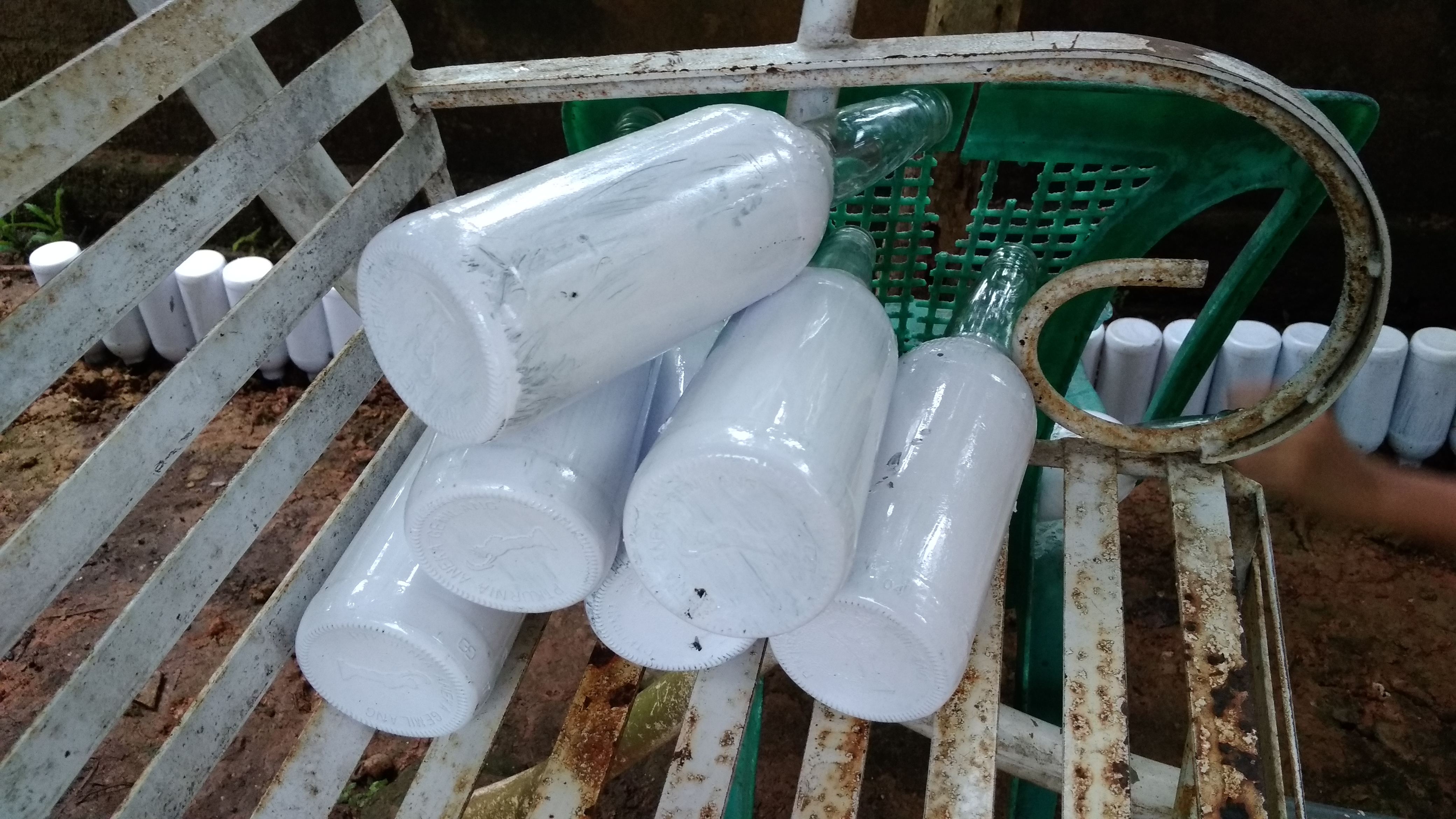 Setelah saya memberikan penyiraman kepada bunga mawar 🌹 saya mempercantik tampilan taman dengan menggunakan botol sirup yang tidak terpakai. Lumayan banyak juga botol yang tidak terpakai. Beberapa hari yang lalu botol sirup bekas ini sudah saya cat menggunakan cat minyak berwarna putih agar lebih menarik. Kemudian botolnya saya balik dan saya tancapkan di tanah menjadi pagar bunga. Saya meletakkan dekat dengan pagar rumah berjejer dengan rapi. Ini baru selesai saya kerjakan pada pukul 11.30 wib. Kemudian saya bersih-bersih dan istirahat siang.