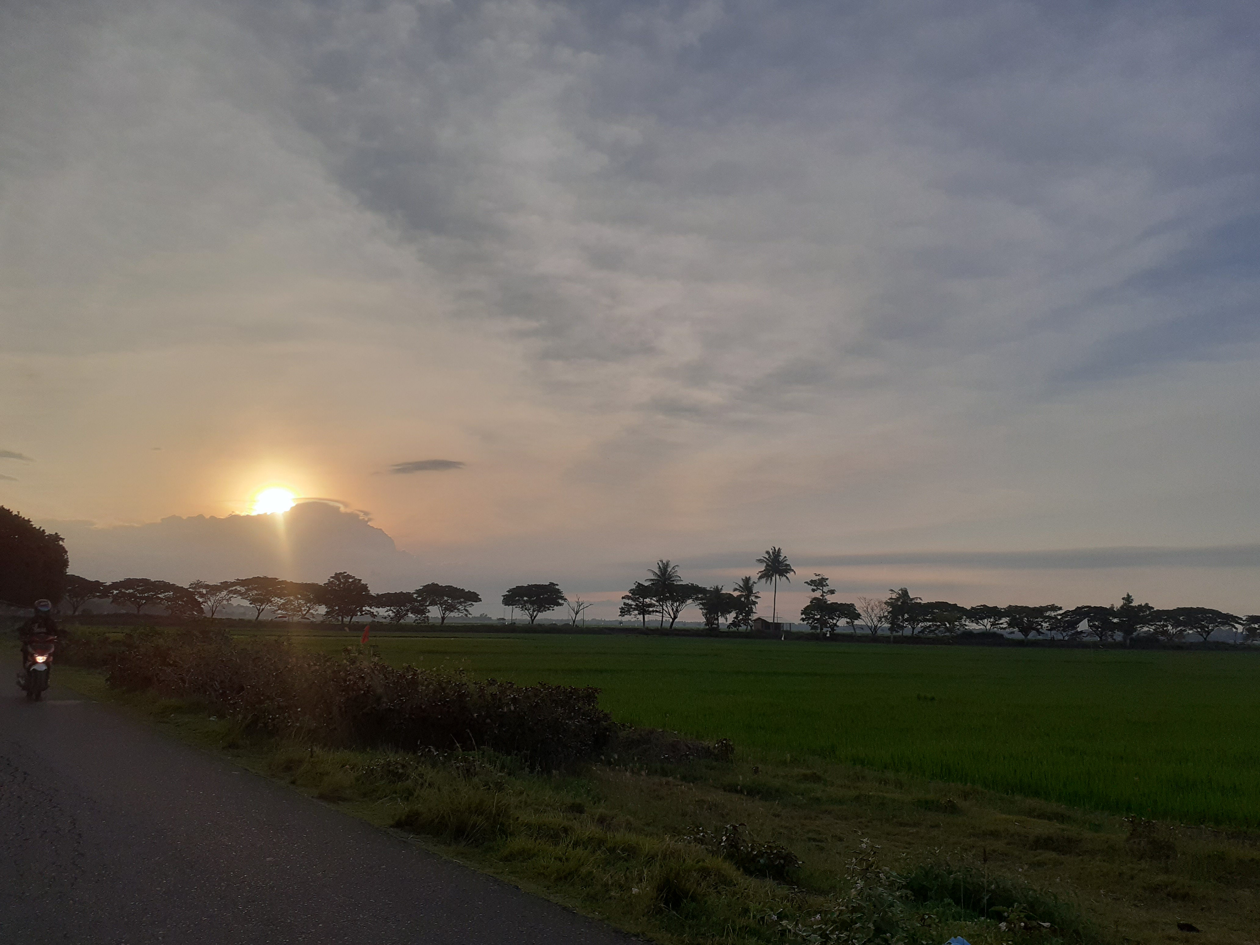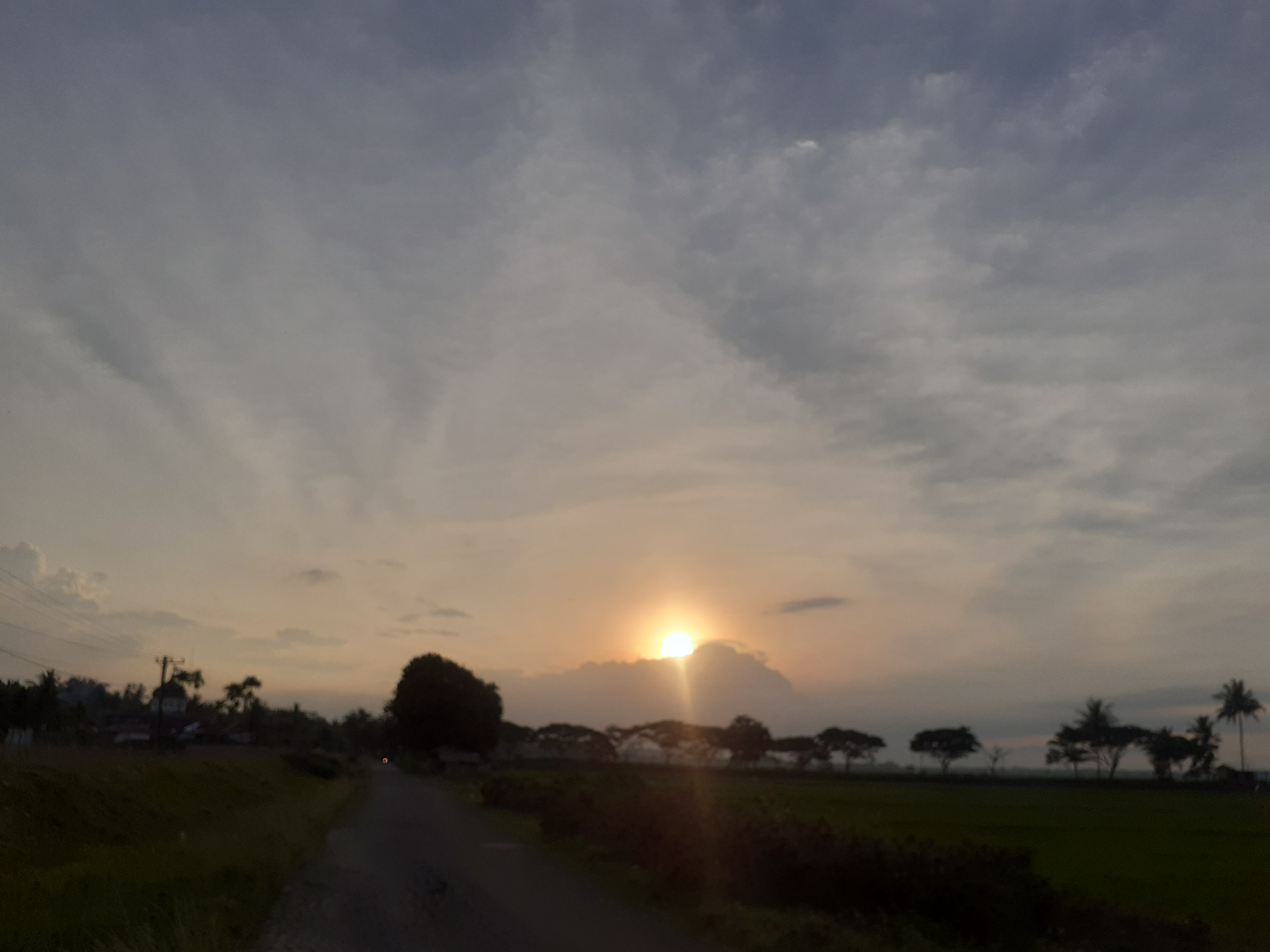 Ini merupakan senja yang sangat indah yang terjadi di saat sore hari kemarin di kampung halaman kami. Nampak indah dan adem tentunya. Dari sini juga kita dapat belajar tentang arti bersyukur kepada sang pencipta, betapa cantik ciptaanNya, tak bisa kita mengubah juga menambahkan apa yang sudah terlukis di langit sana, kita manusia hanya bisa menikmati dan mengaguminya.