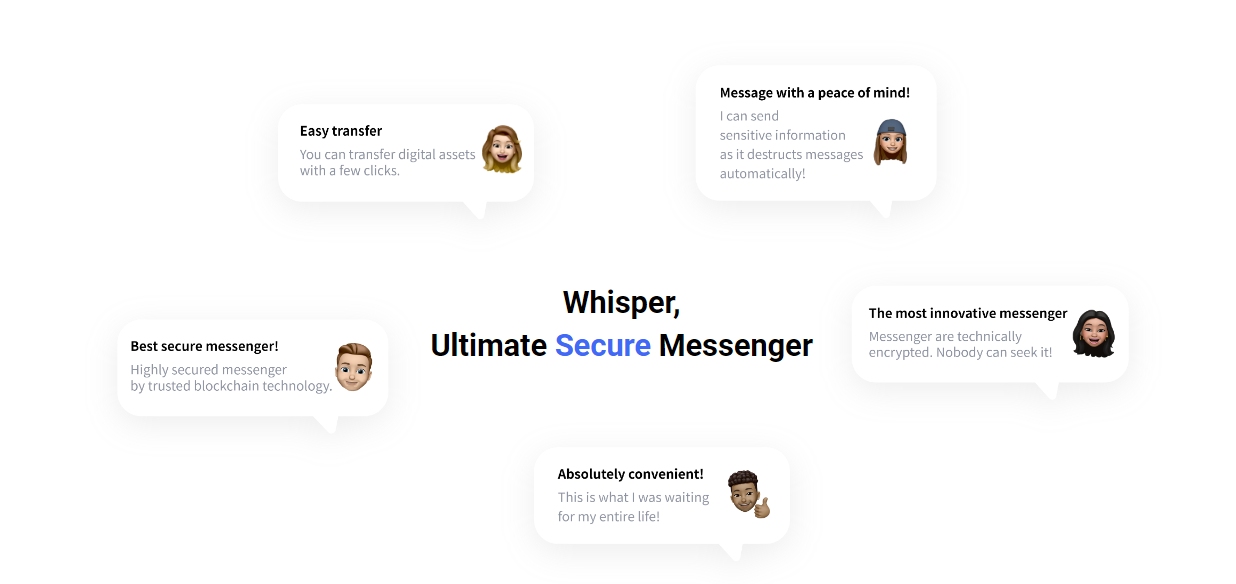 Whisper MSG application, by the same, improves how people really communicate and transmit cryptocurrency with each other in a safe blockchain technology based on a higher network speed in just one second, and the lowest gas costs throughout the ecosystem, Whisper MSG Wallet provides convenience and Comfort only for transmitting assets only digital numbers by introducing your PIN code