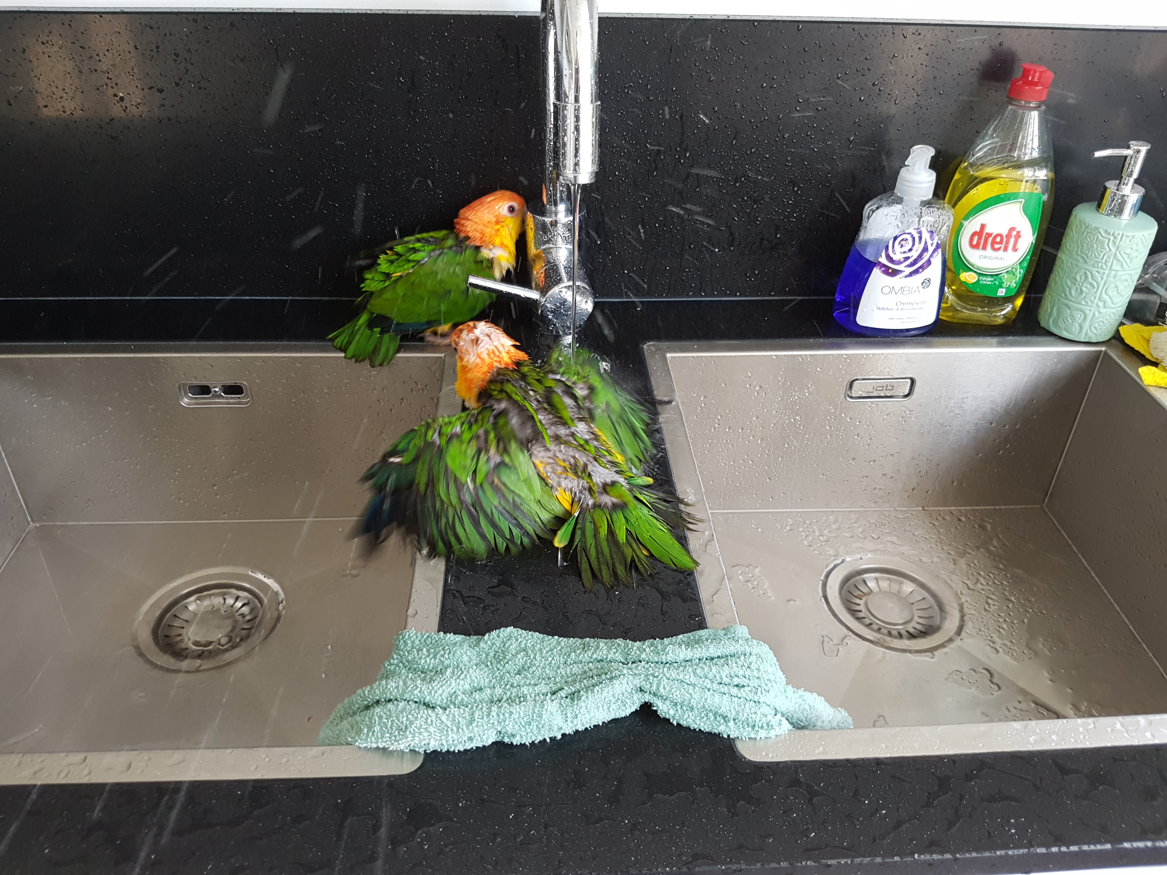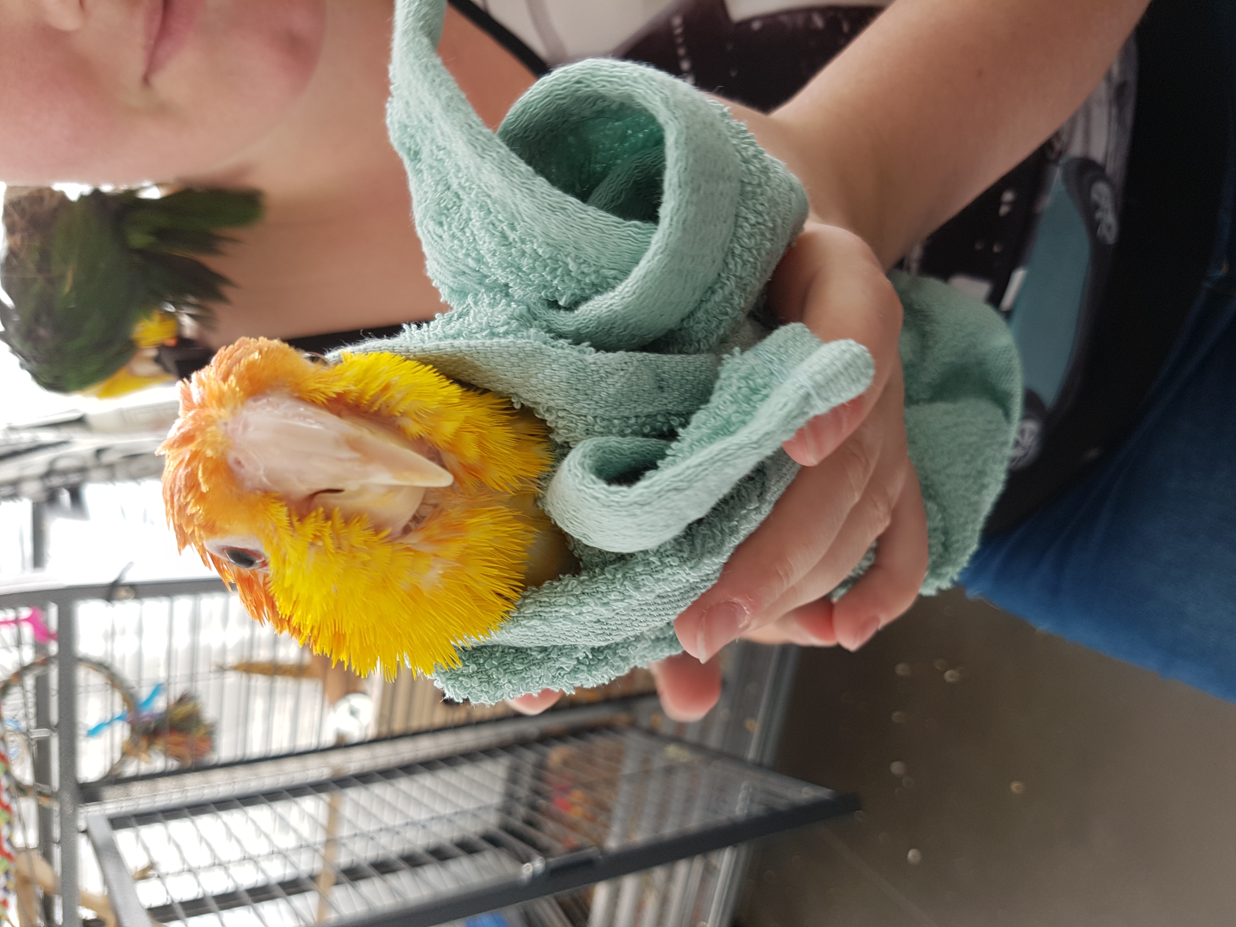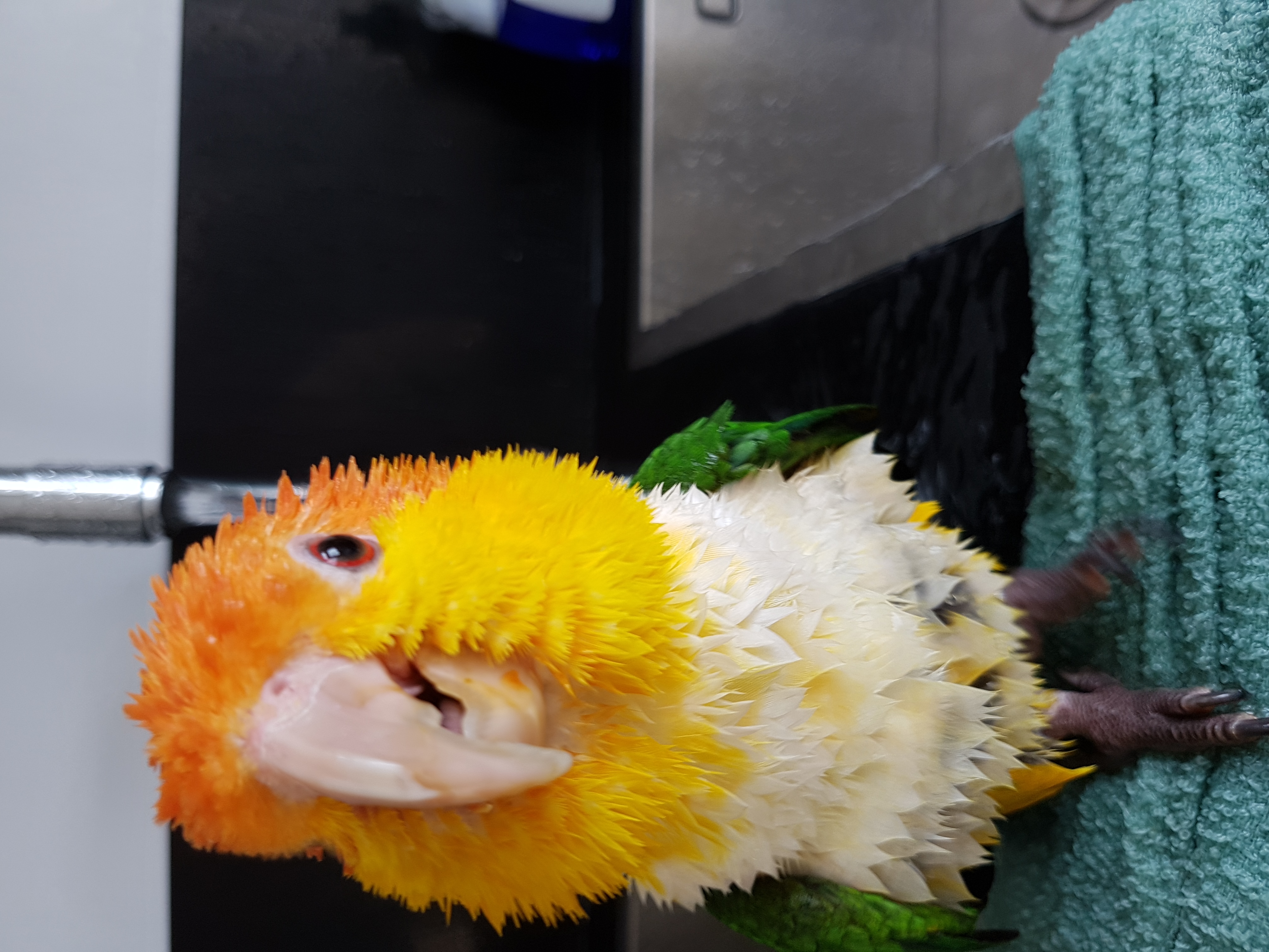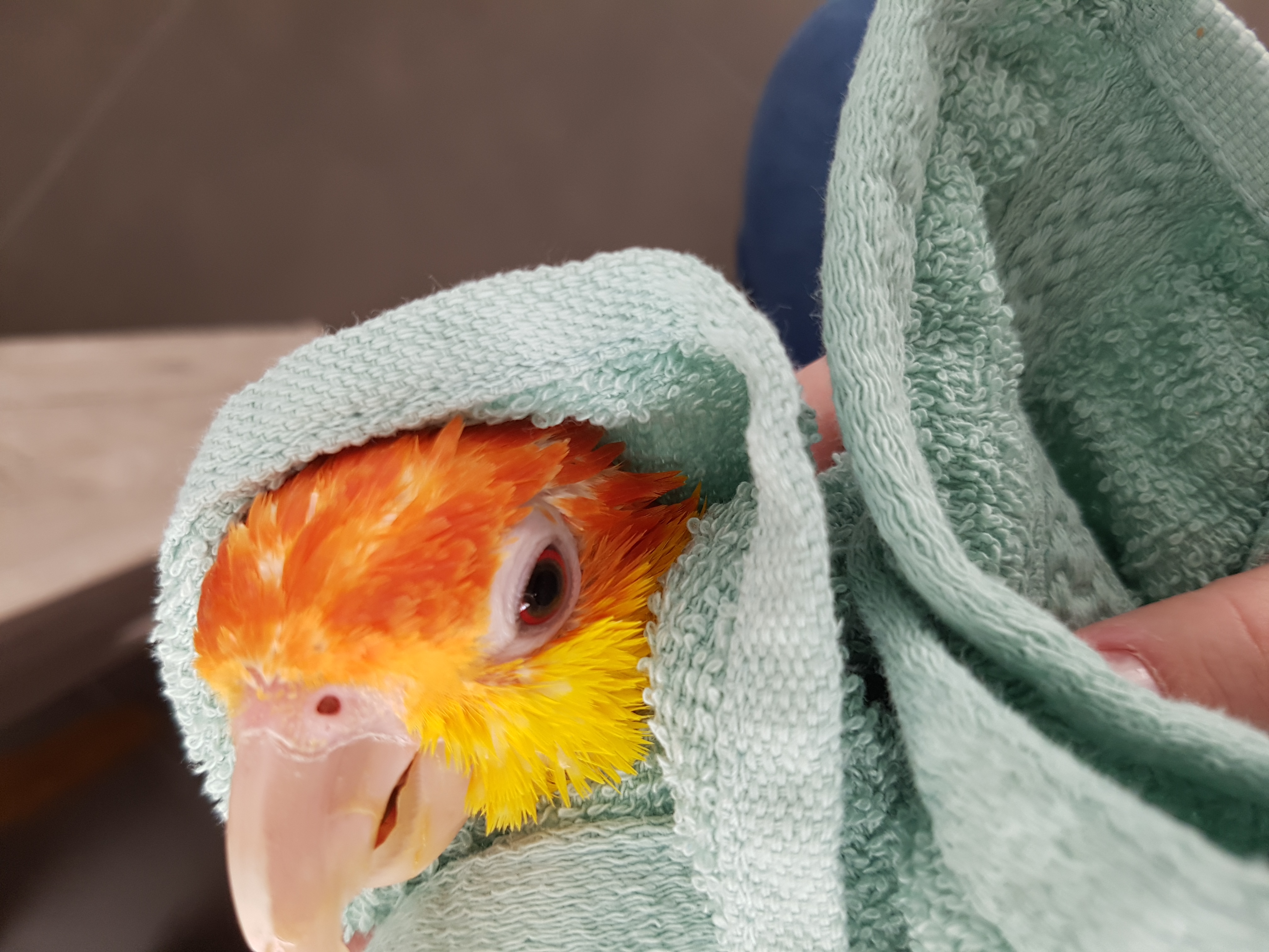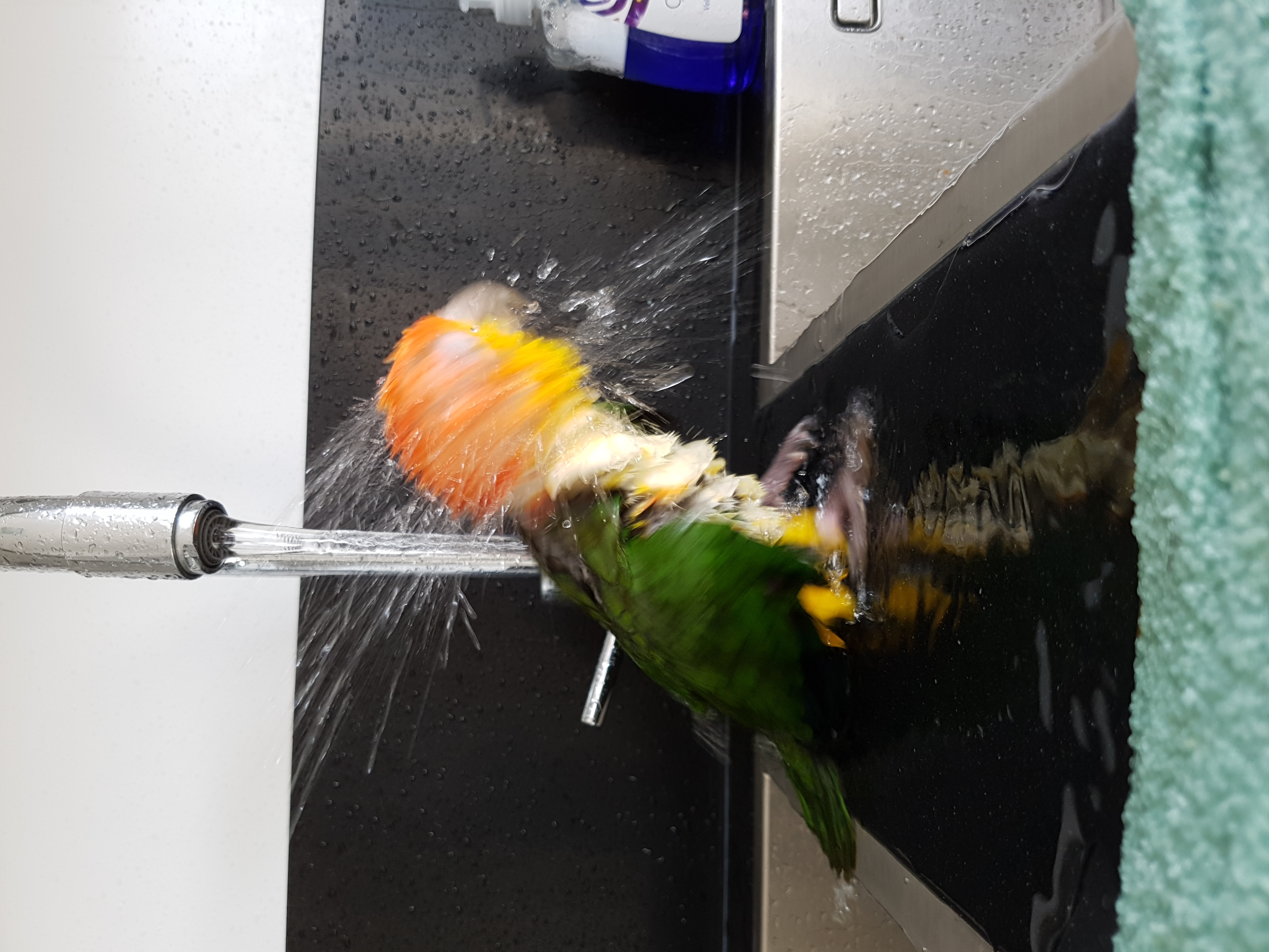 Shower dayjeroen240 (25)in #whitebelliedcaique • 8 years ago Sometimes we take a shower, but when we shower the whole kitchen is wet After we took a shower we dry up in a towel. #bird #birdlover #lilo #dori