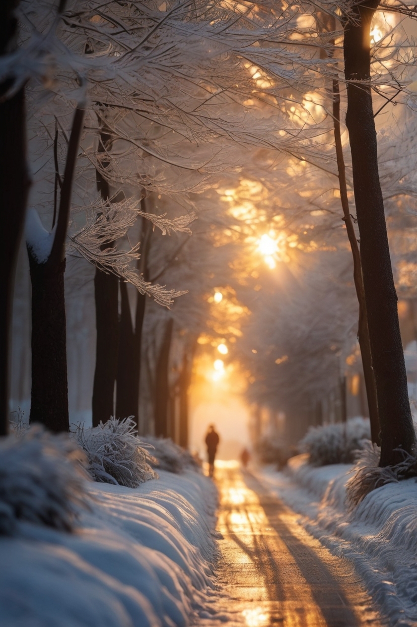 গাছের ডালে তুষারের রুপালি সজ্জা,