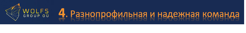 Команда проекта достаточно многочисленная. В нее входят специалисты разного профиля, которые успешно развивают Wolfs.Group.
