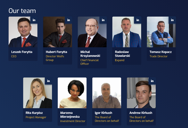 Большинство из них имеют профили в Linkedin. Вы можете зайти на них через фоциальный сайт Wolf.Group.