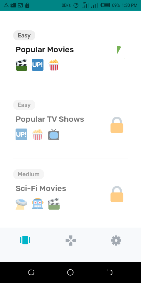 Just start from the available one that is "Popular Movies" and answer the puzzle in relation to the provided emoji.