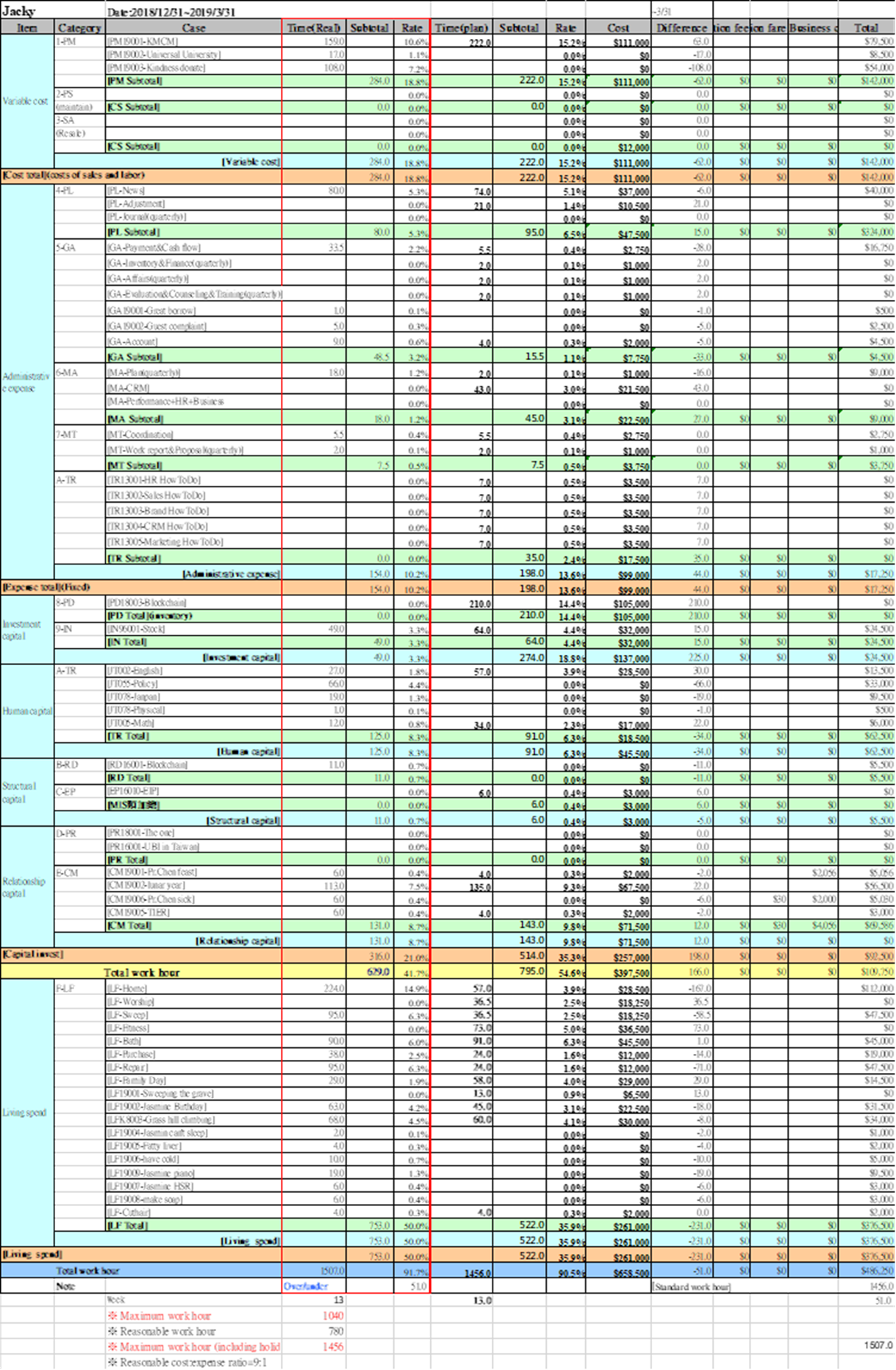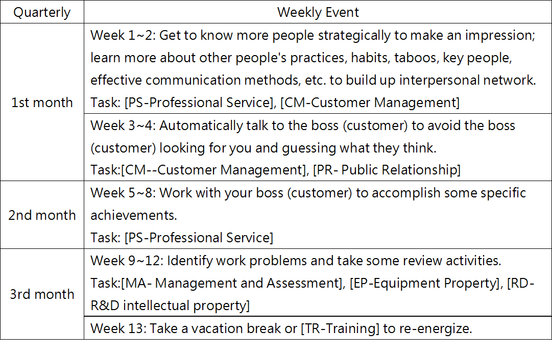 Firstly, the working hours statistics, calculate the working hours on the calendar every quarter, and integrate with the quarterly work plan into a quarterly work report. example: