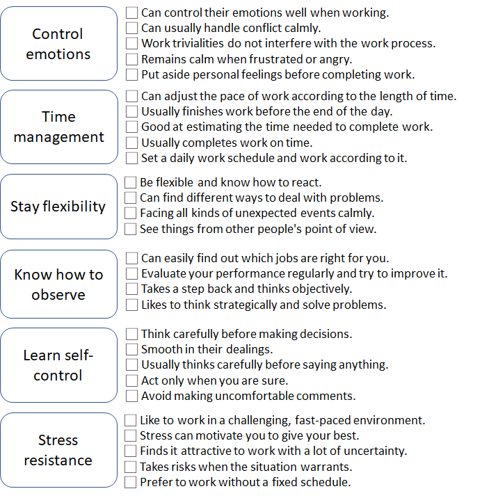 □ Can control their emotions well when working.
