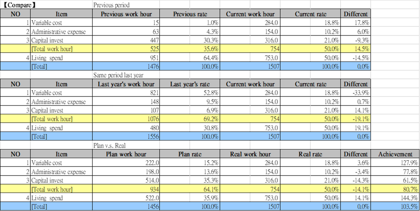 From the difference in progress, we can calculate the rate of achievement of the set target compared to the actual performance and the rate of growth of the current period compared to the previous period and the same period last year. Examples are as follows: