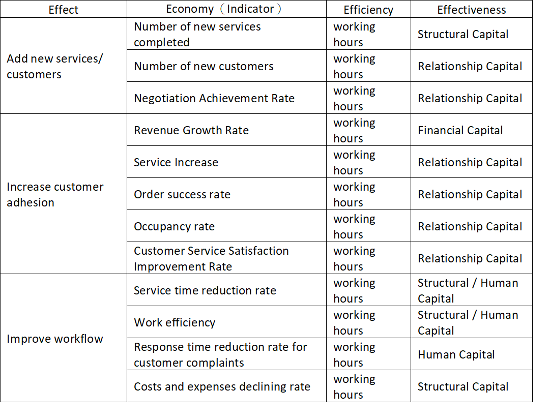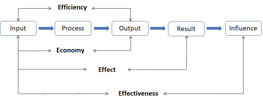 Work should have performance! Here, we refer to the performance management theory and adjust the 4E indicators defined by Fenwick (1995) and Flynn (1997) as the four basic principles for measuring performance, namely efficiency, effectiveness, effect, and efficiency, as follows.