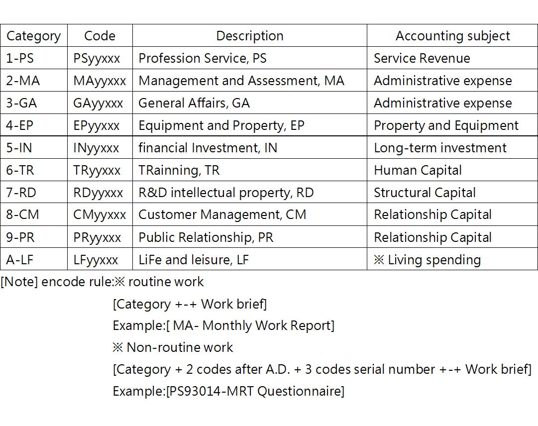 [Note] Software engineer work activity item code reference: