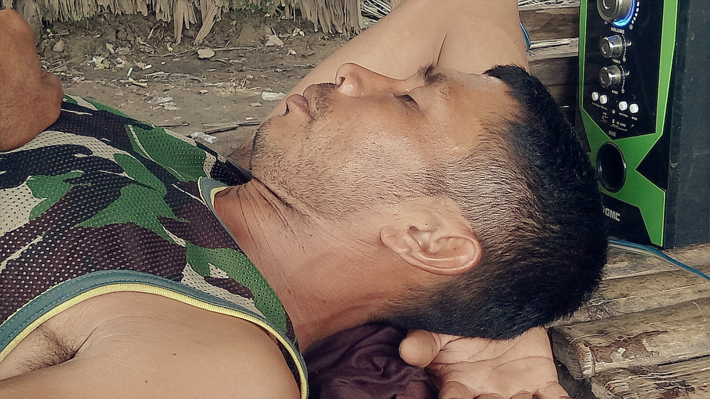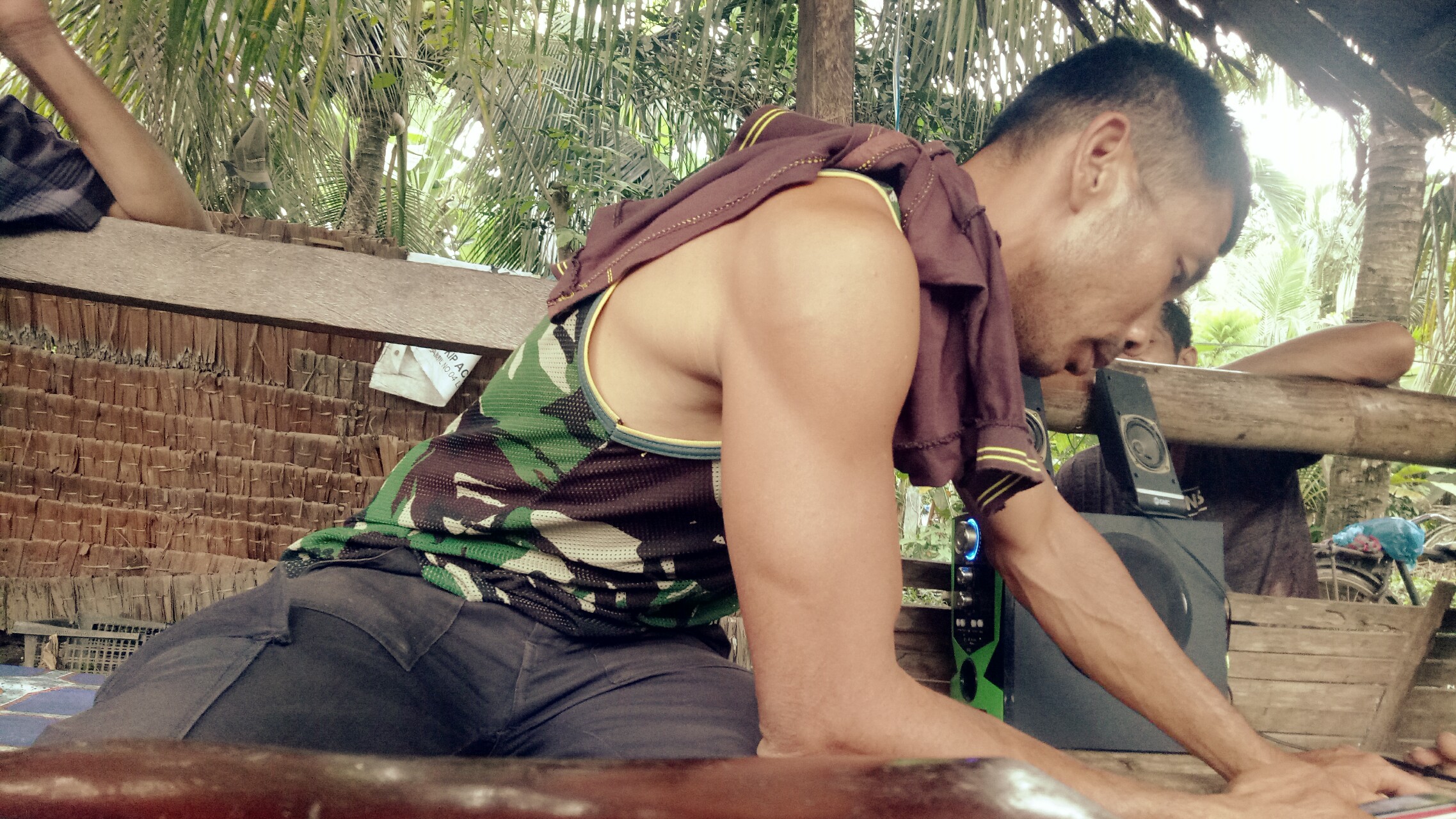 After doing a lot of activities all day long, working for a living for my family, me and other friends took a break on the terrace of a small shop.