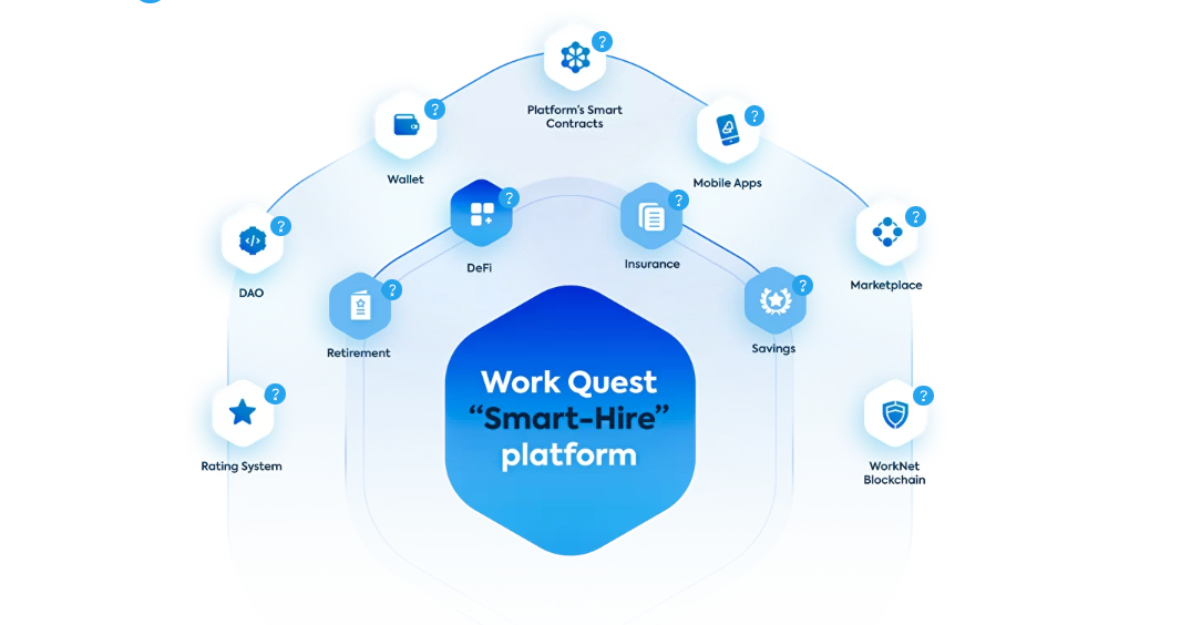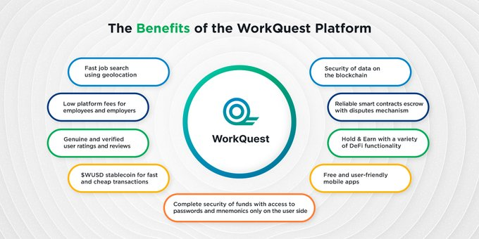 Hello, this time I will discuss the WorkQuest platform which is an online Marketplace and Decentralized Payment Provider that connects employers with employees supported by Smart Contracts regulated by DAO. The platform incentivizes employers and employees to deal honestly and carefully using its Rating System with all feedback stored in the blockchain. As the platform acts as a transaction facilitator between employers and employees, various DeFi products are available to platform participants, such as Savings, Pension & Disability Insurance. the technical structure of the platform, WorkQuest features several network components including Workers collecting data which is fed directly to the blockchain in the form of blocks and transactions. Explorer users make requests to search all kinds of blockchain information. The system also has a channel for writing information to the blockchain. The structure of all these services is completely decentralized, with users owning their seed phrases and private keys.