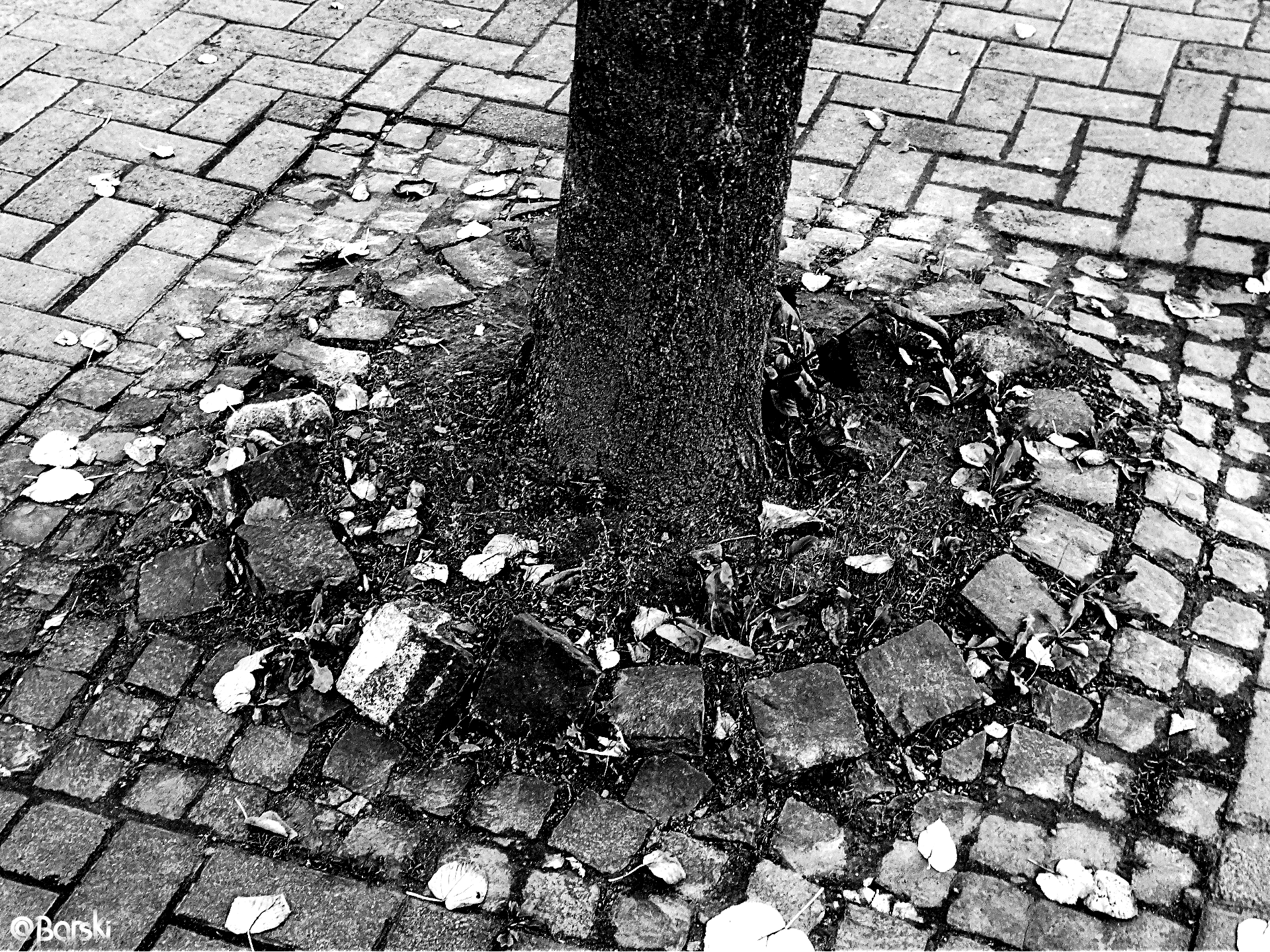 Signs of false modesty are often observed in parks where developers, or those involved in the park's landscaping, out of modesty failed to allow for tree growth, apparently afraid of being accused of stealing paving stones. They laid paving stones in abundance, but this generosity backfired, as they say.
