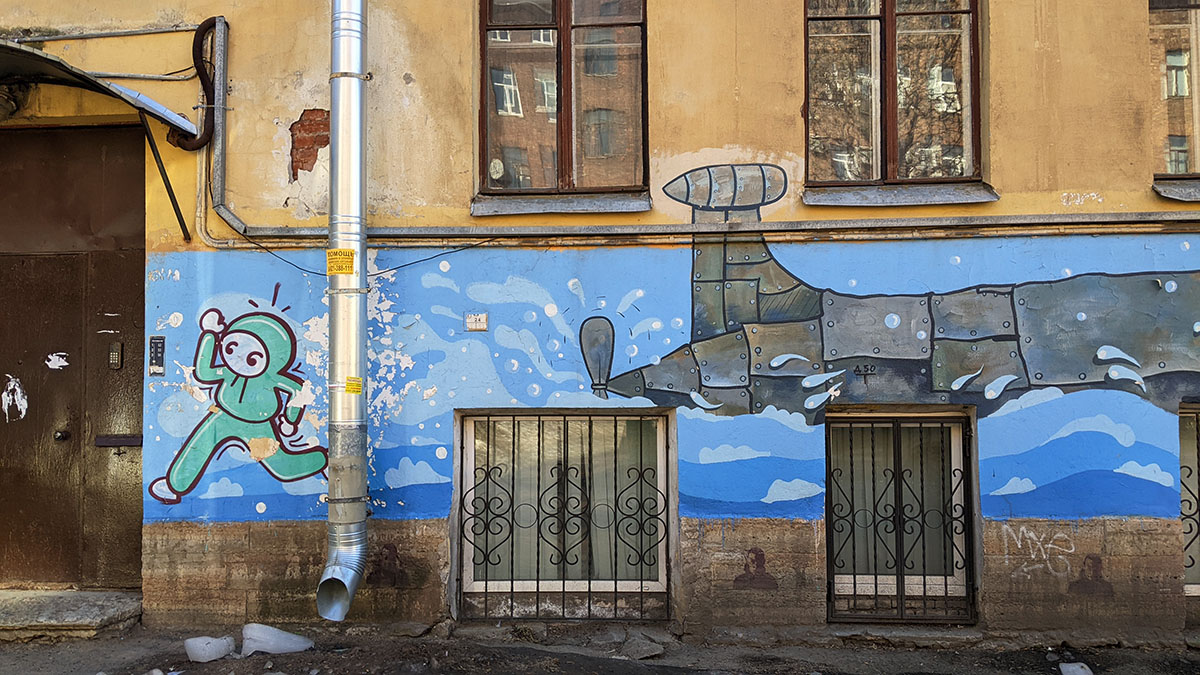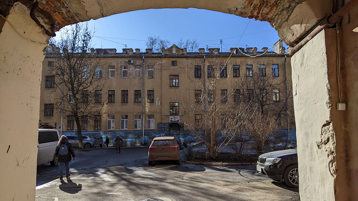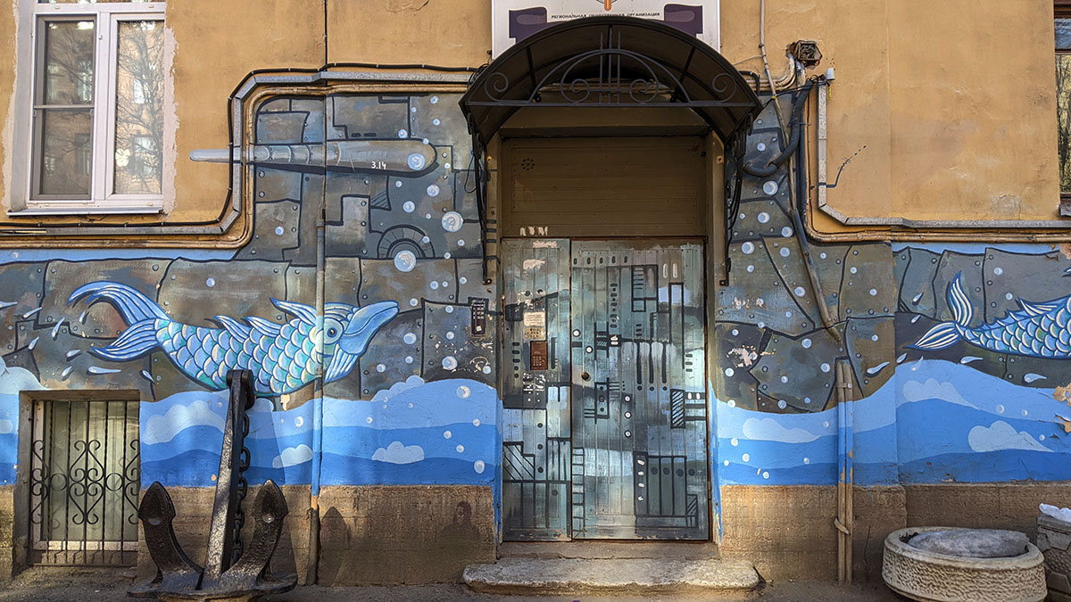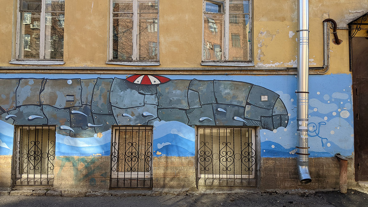 I was walking around Vasilievsky Island and suddenly saw something unusual in the landscape in one of the backyards. I had to go in the courtyard and take a closer look.