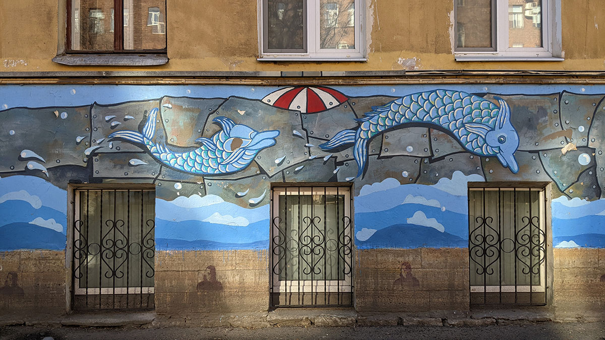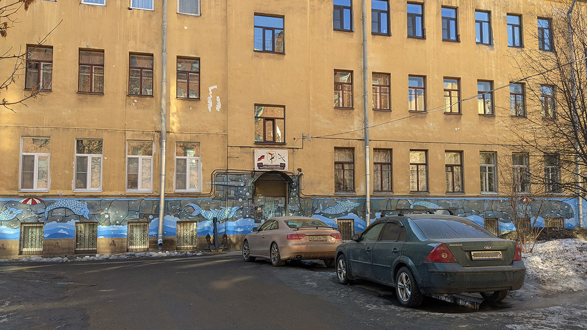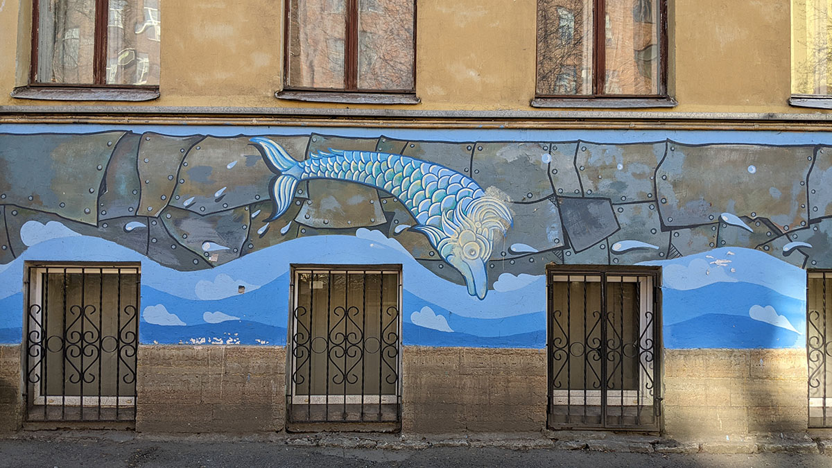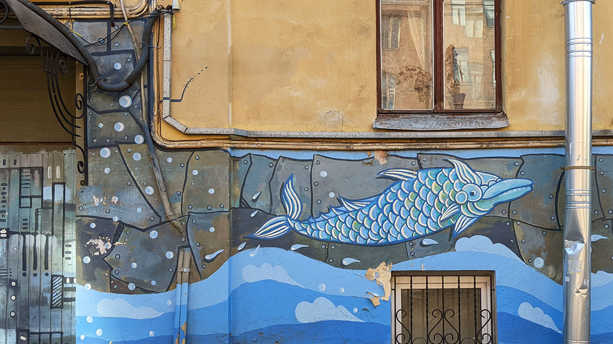 I was walking around Vasilievsky Island and suddenly saw something unusual in the landscape in one of the backyards. I had to go in the courtyard and take a closer look.