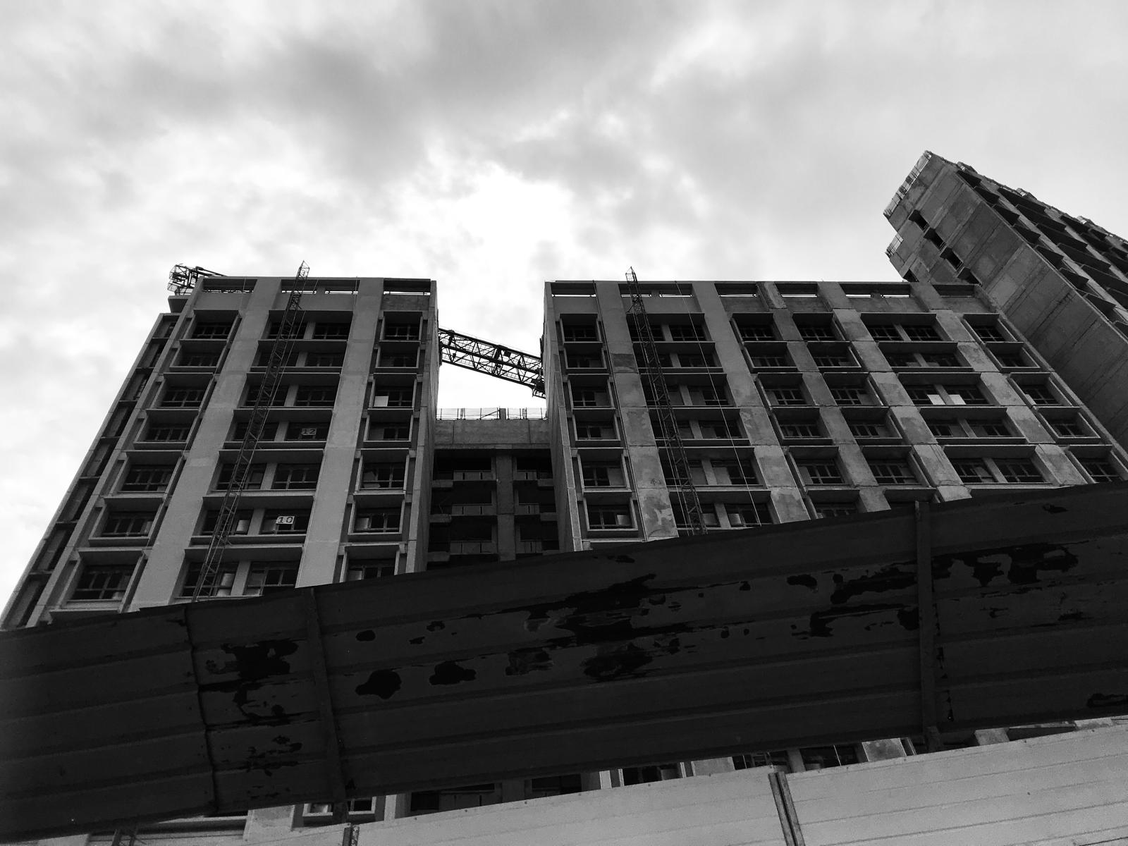 - Overall Feel: The image conveys a sense of scale and industrial progress, with a slightly dramatic and imposing atmosphere due to the black-and-white filter and the perspective.