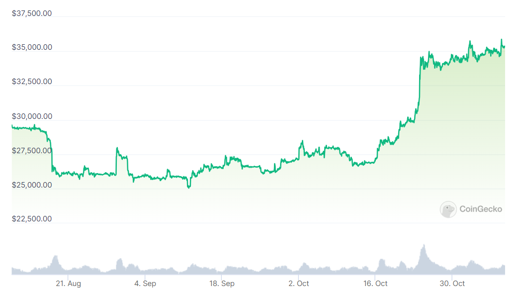 Bitcoin price remained strong in 2023. The price has increased by 112% since the beginning of the year. On the other hand, Bitcoin's outlook has strengthened further in recent weeks. In the chart below, we see the price movement of Bitcoin over the last 90 days.