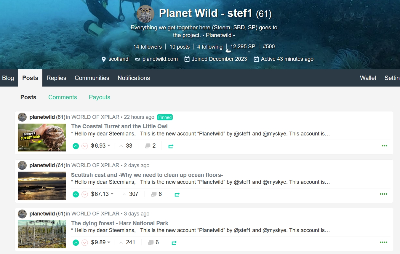 First of all the blog itself, it looks like that and as a thumbnail is a pastel drawing of @stef1 of an owl, majestic and mysterious bird.