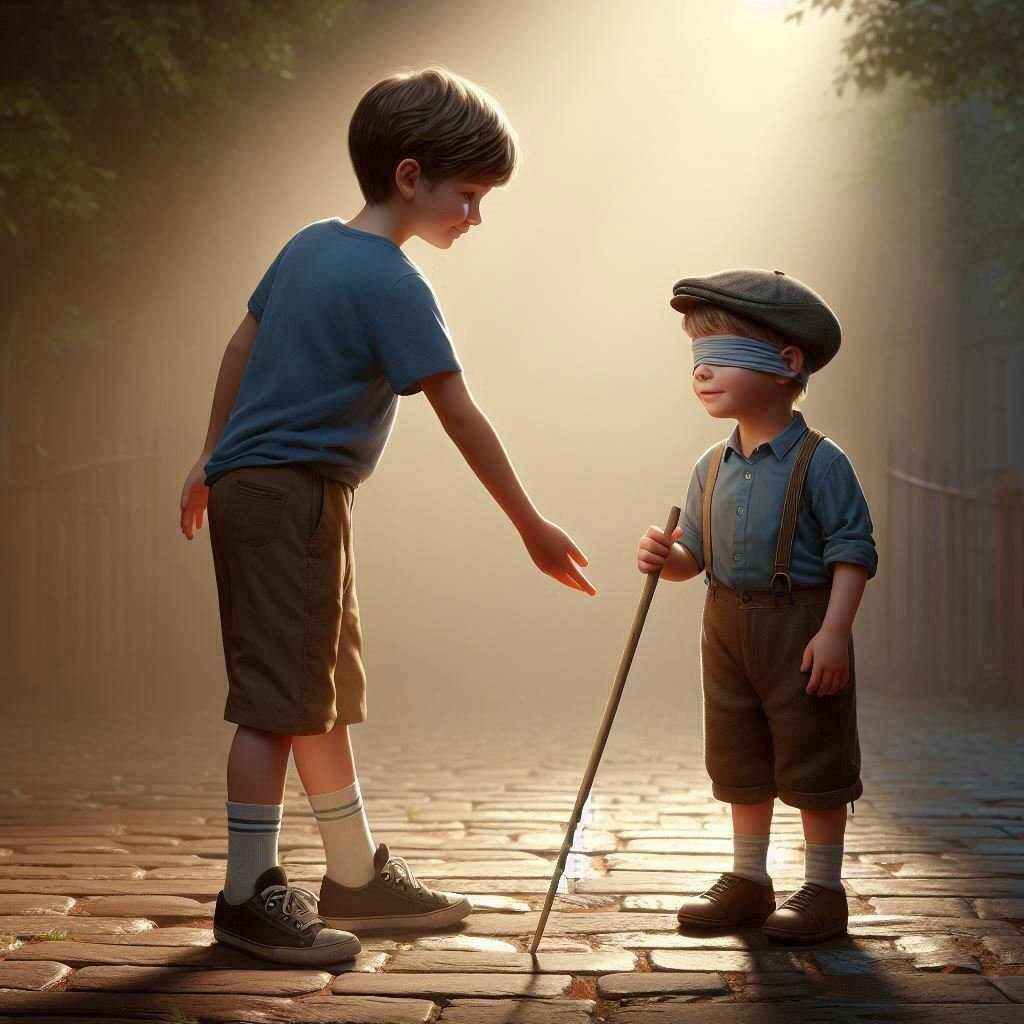 Lily and Robert didn’t want to talk to him but Jeff asked him what was the problem. The kid told Jeff that his name was Peter and he was blind since he was 3 years old. Jeff was shocked and asked Peter where his parents were. Peter told him that his mother was in the hospital and his dad passed away in a car accident when Peter was only 7. The walking stick Peter had was broken. He told Jeff that his mother was unable to work and that Peter didn’t have enough money to pay for his mom’s surgery. Jeff felt bad for him. That night Jeff couldn’t sleep. He couldn’t stop thinking about Peter. Jeff said to himself : “I have to help Peter in some way”. The next morning Jeff told his parents about what happened and they supported him. Jeff’s parents gave him some money to buy Peter a new walking stick and they also gave Jeff the money for Peter’s mother’s surgery (since Jeff’s parents are wealthy). That day after school, Jeff went to a shop and bought Peter a brand new walking stick. He gave it to Peter along with the money.
