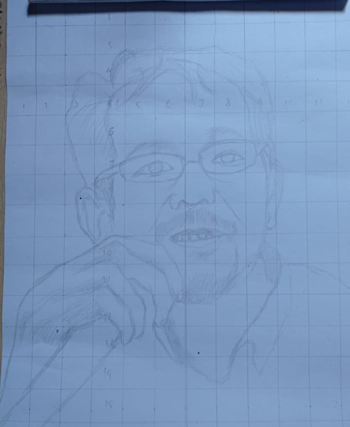 Aku melihatnya melukis dengan melihat foto dari album medsosku, foto aslinya adalah seperti yang dibawah ini