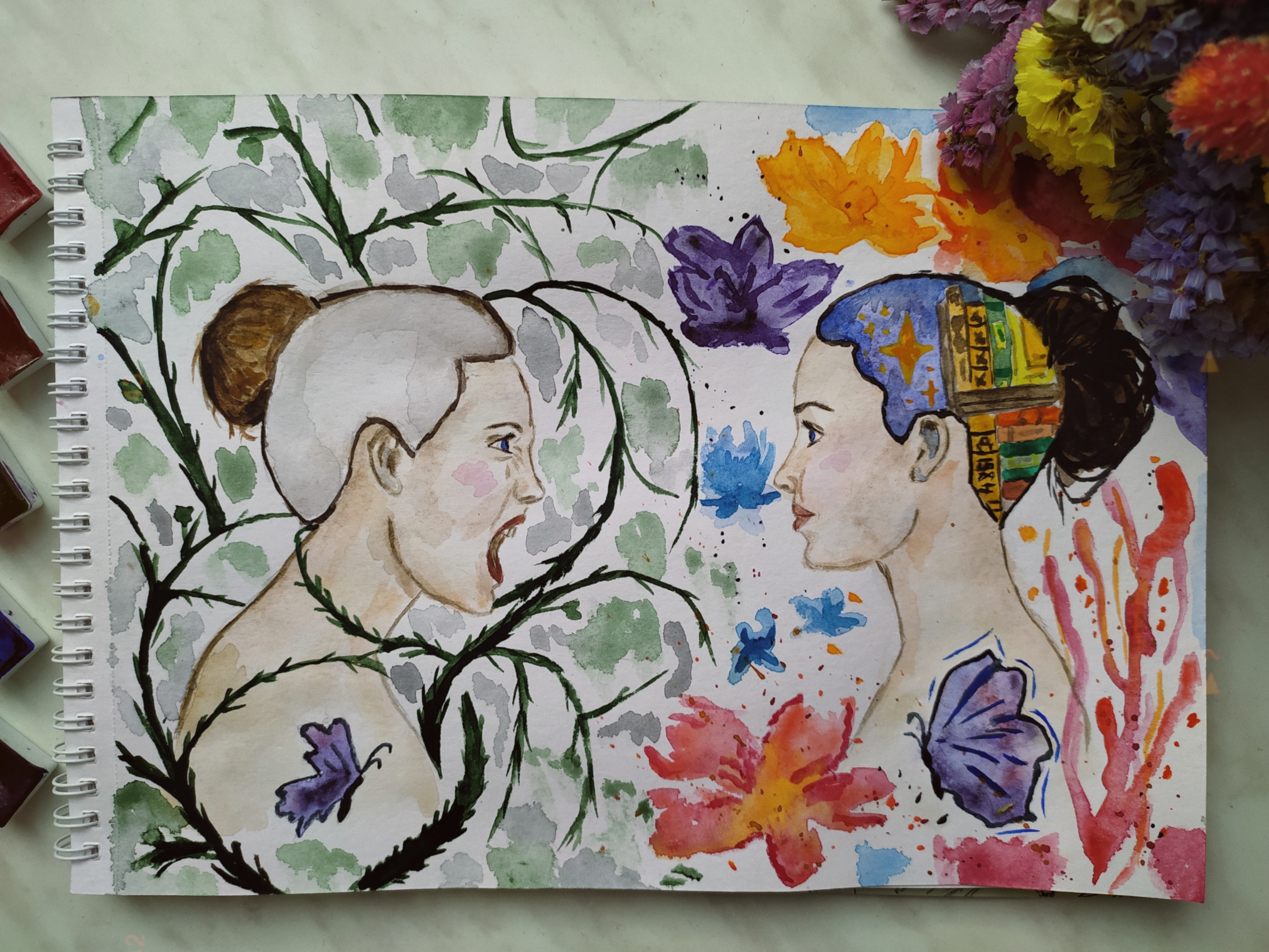 В современном мире многие люди не обращают внимания на чувства других, стремятся удовлетворить свои желания, никому не доверяют и не дают шанс стать лучше. На моя взгляд, это неправильно. Я думаю, что плохих людей не бывает, в каждом из нас есть что-то хорошее. На эту тему много раз размышлял в своих стихотворениях Эдуард Асадов. Его стихотворение вдохновило меня на этот рисунок.