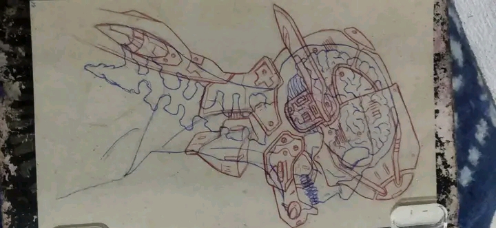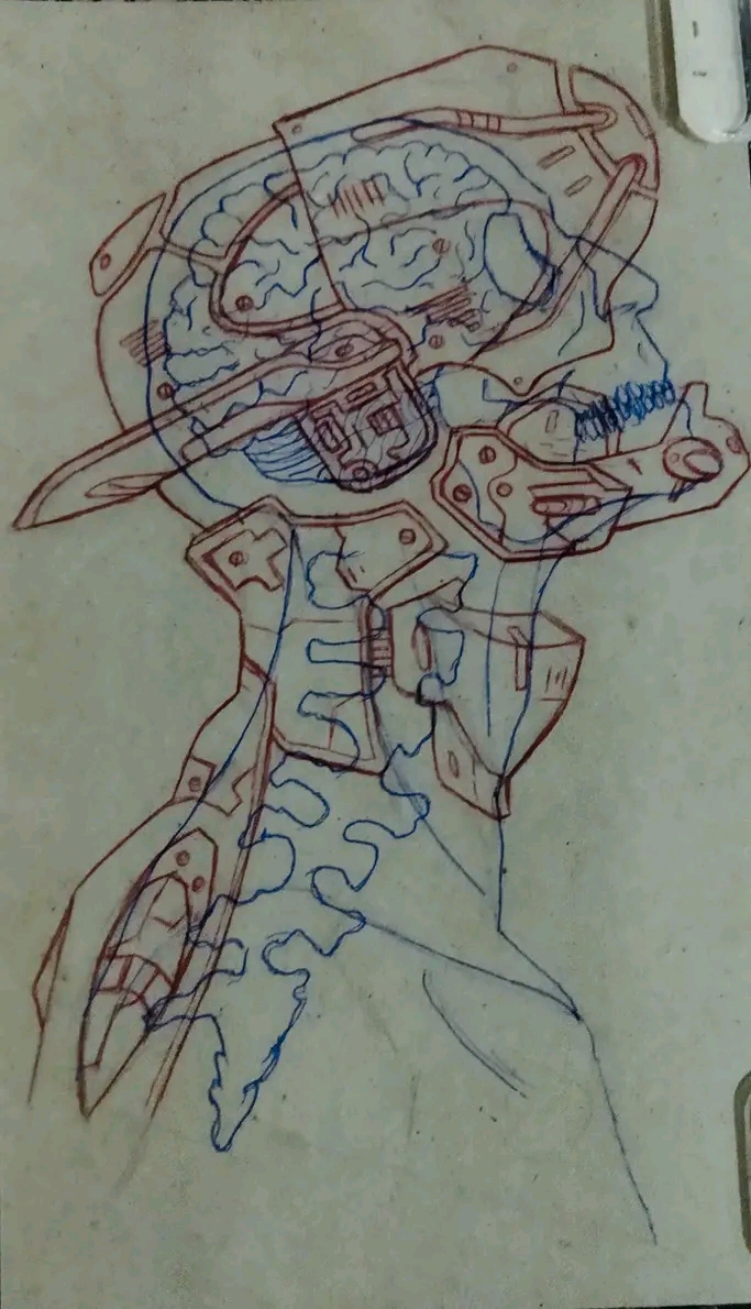 #art #futuristicskull #redandbluepen #creativity #robot