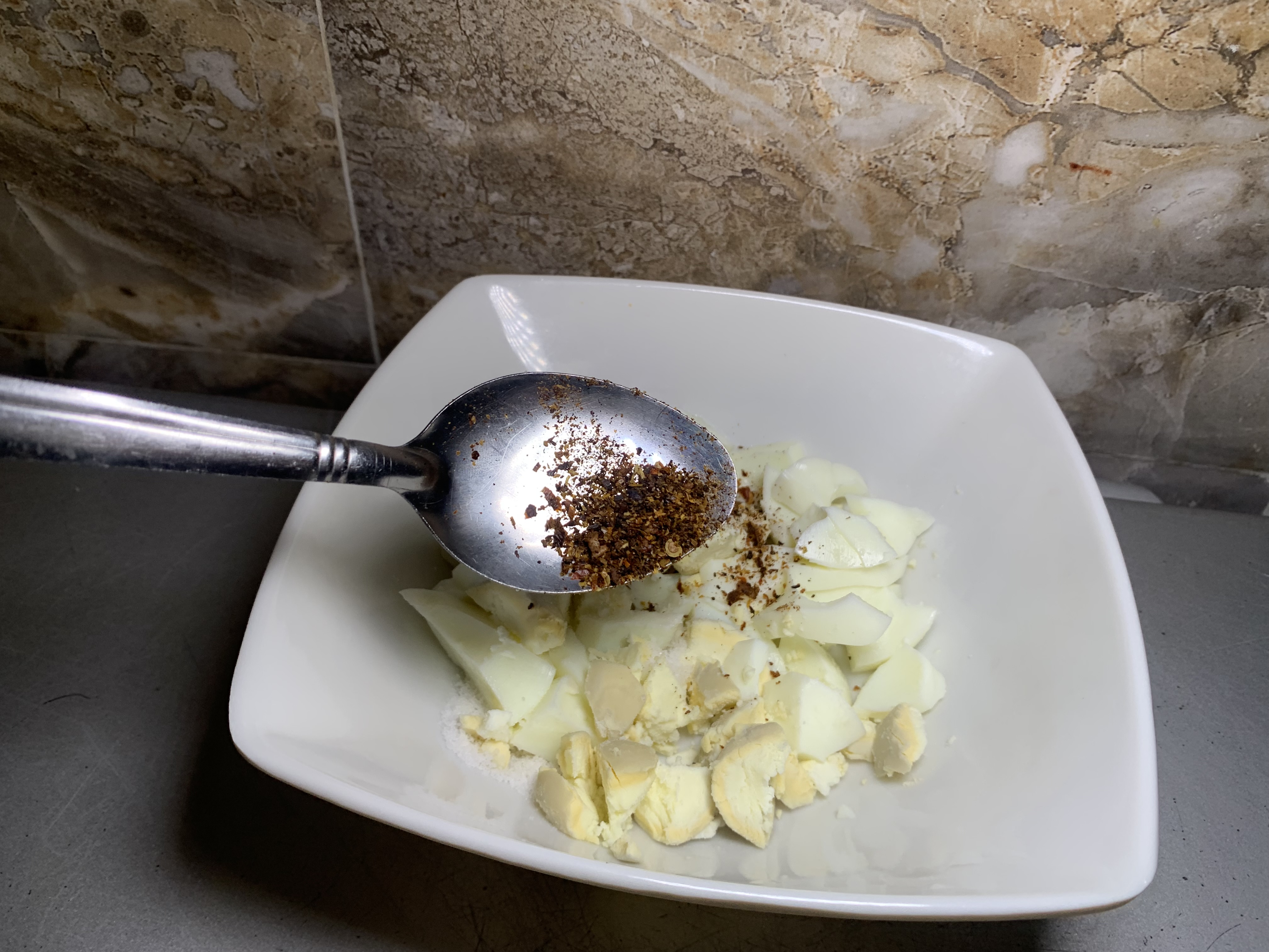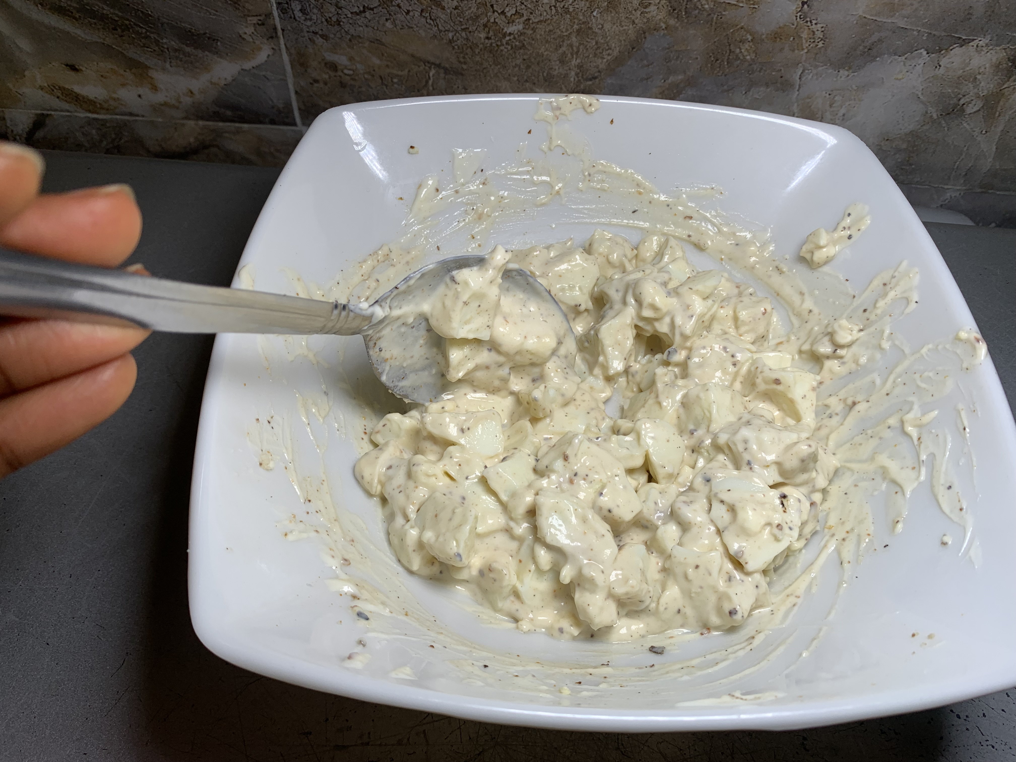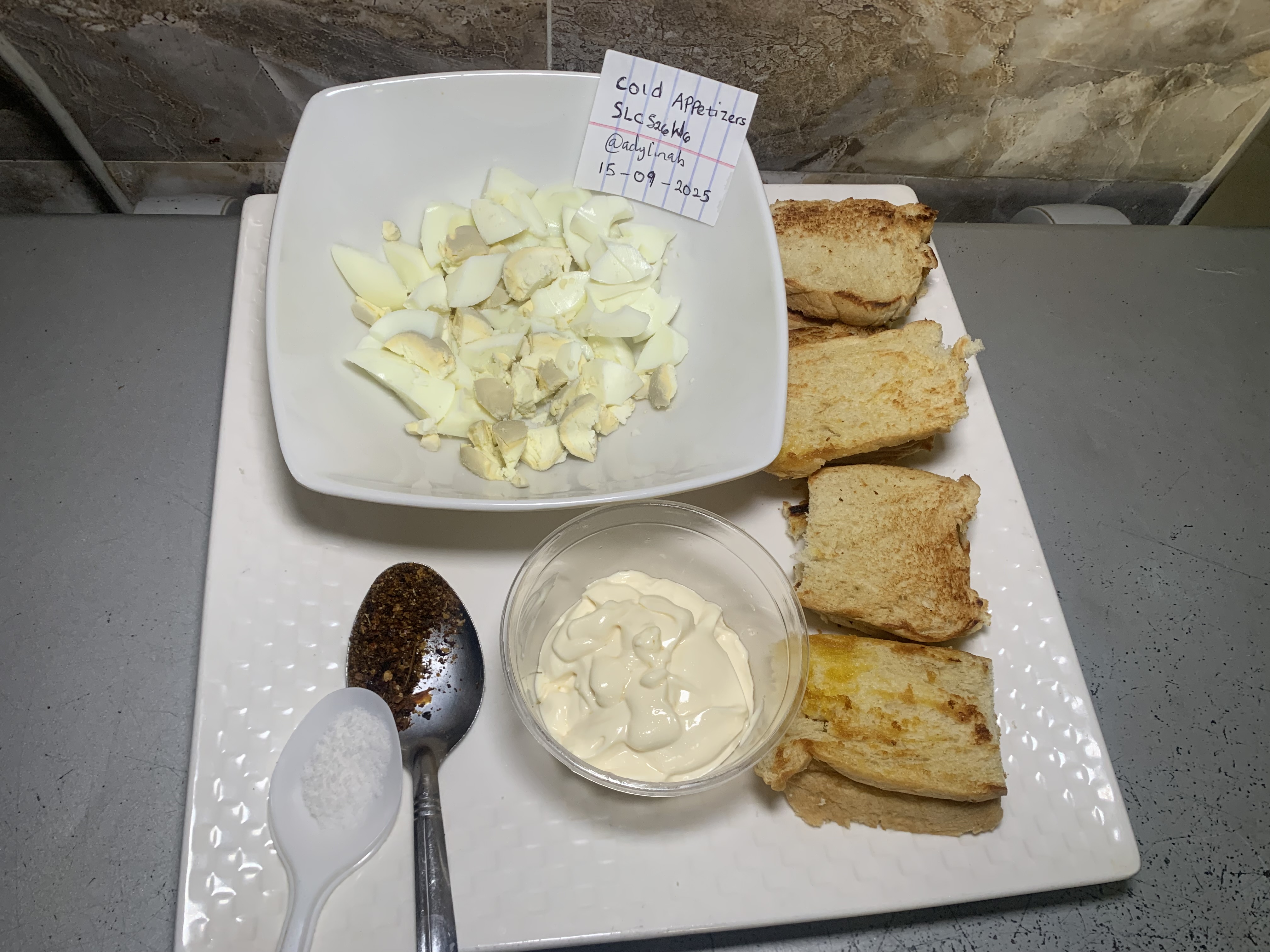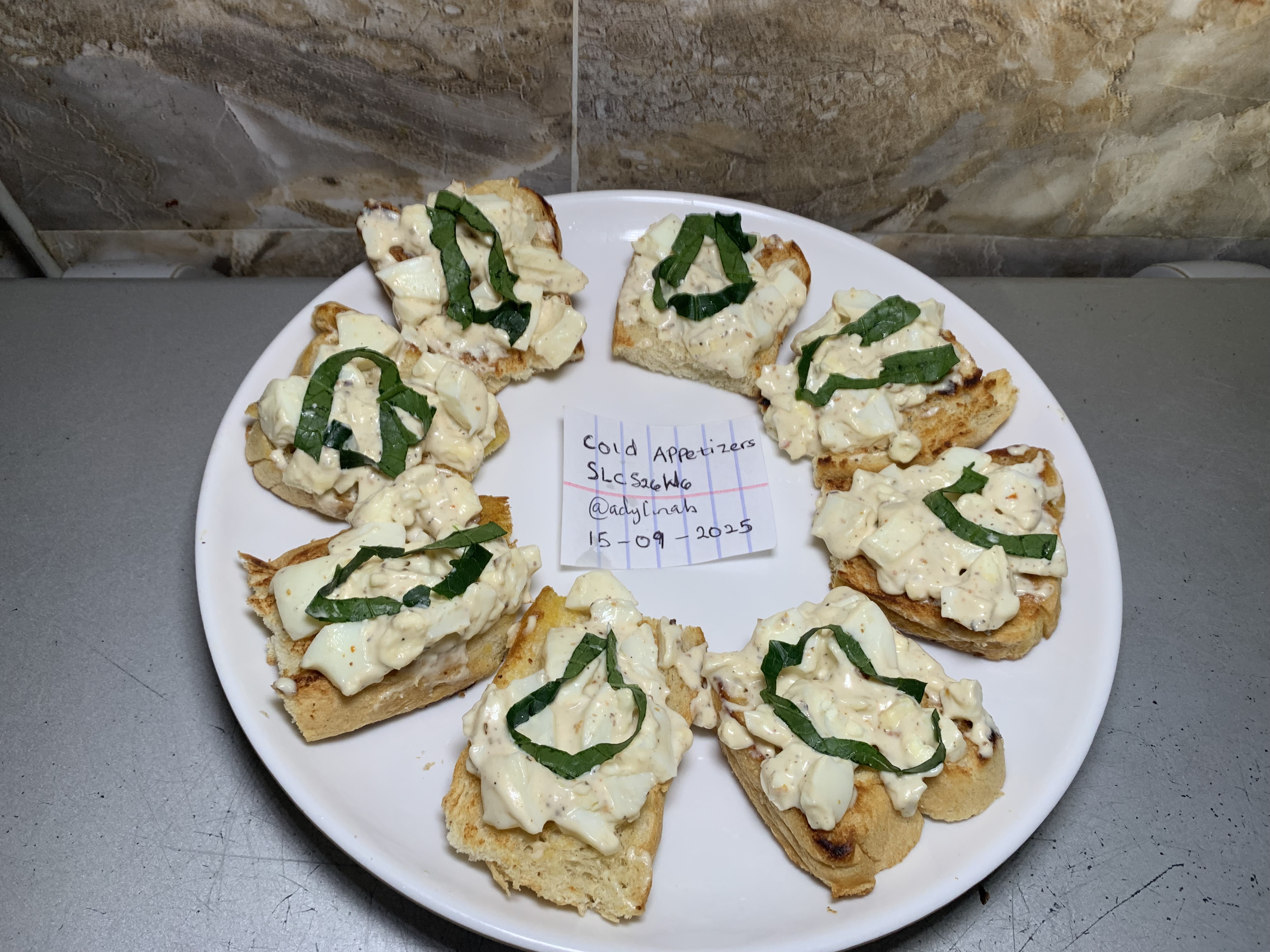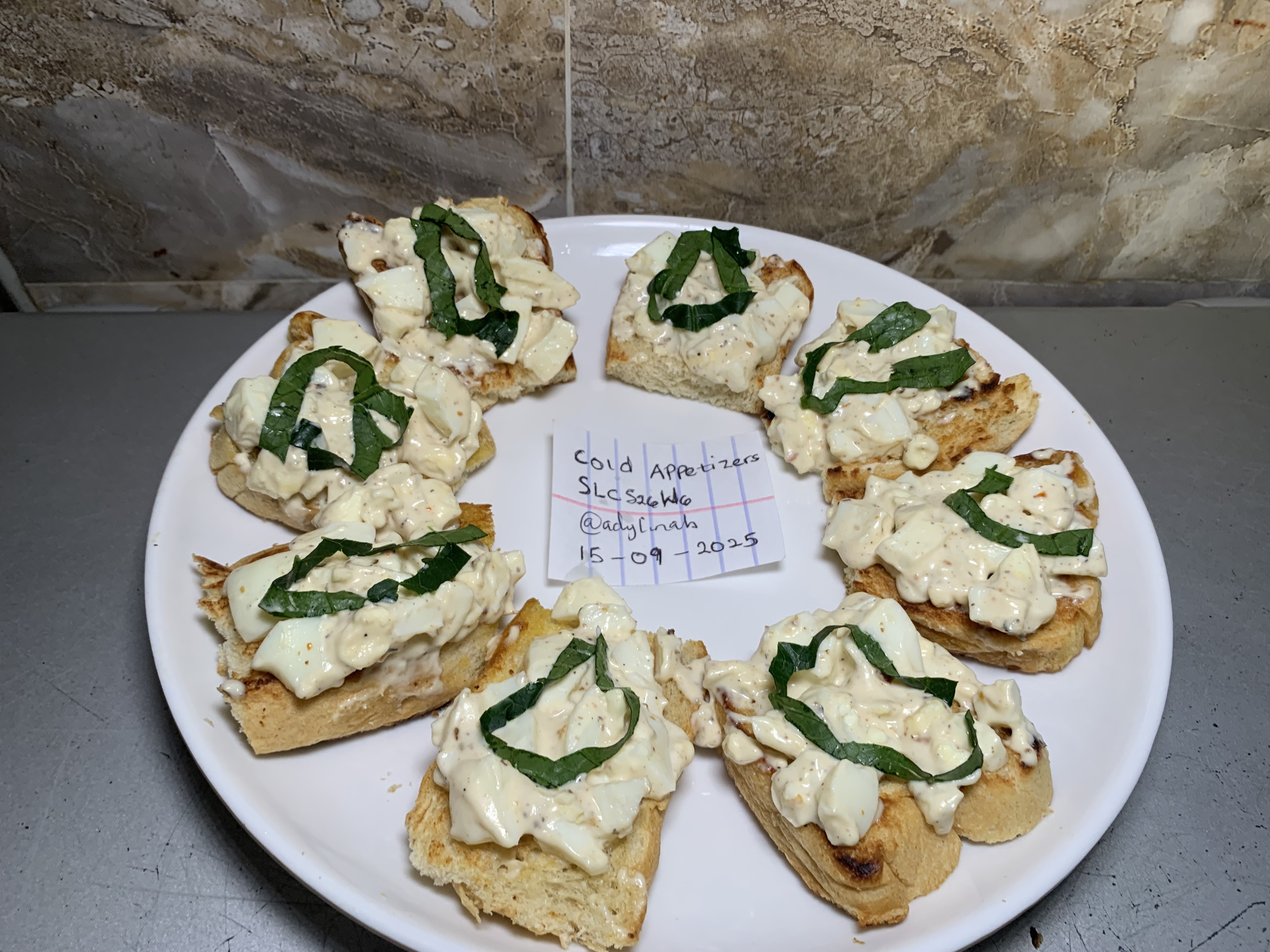 In less than 20 minutes, my delicious cold appetizer ( egg salad and bread slice) was ready to be served in an attractive way.