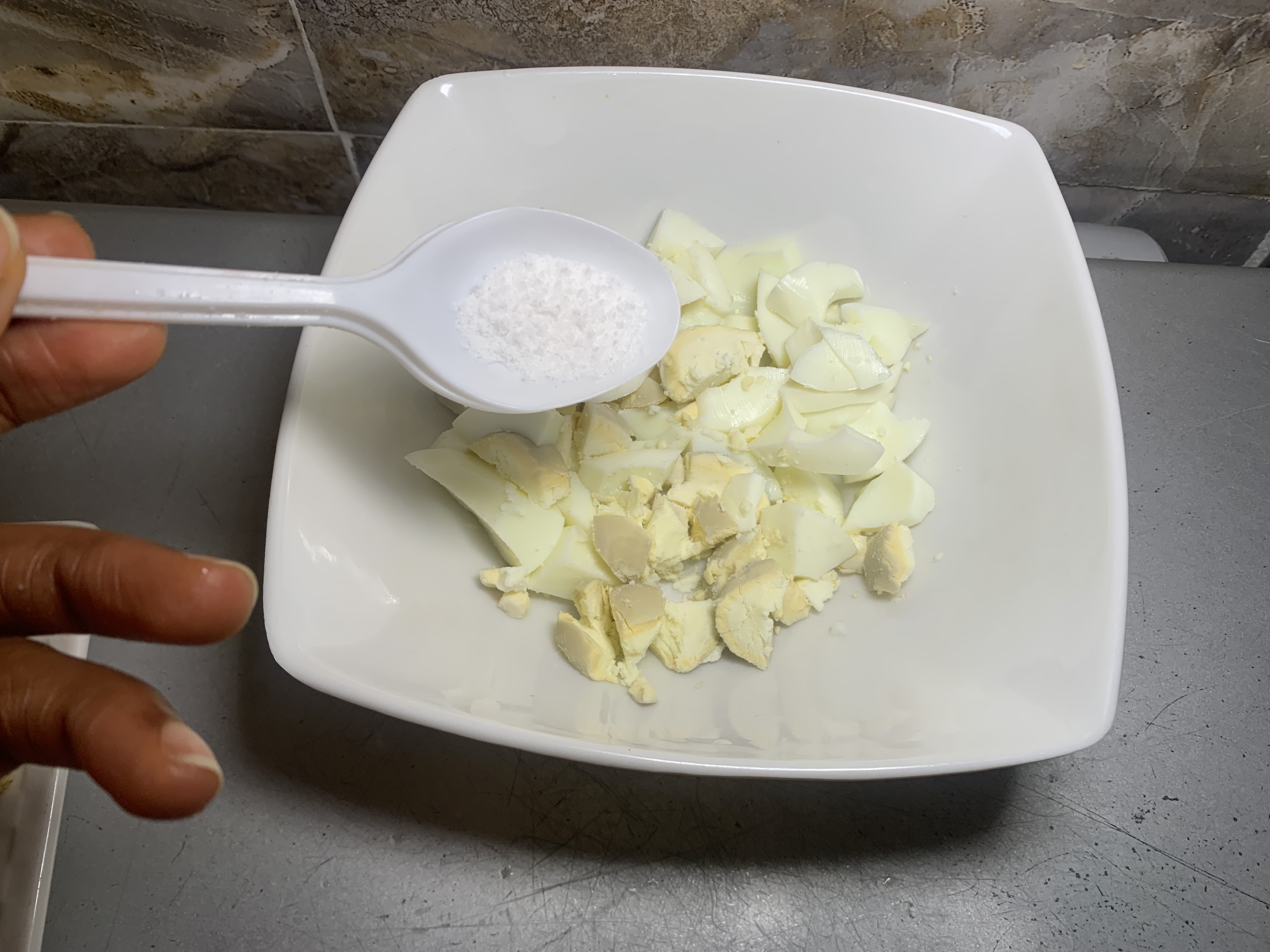 I washed and set my eggs to boil for 15 minutes after which I allowed to get cold and peel the shell out to make use of the flesh.