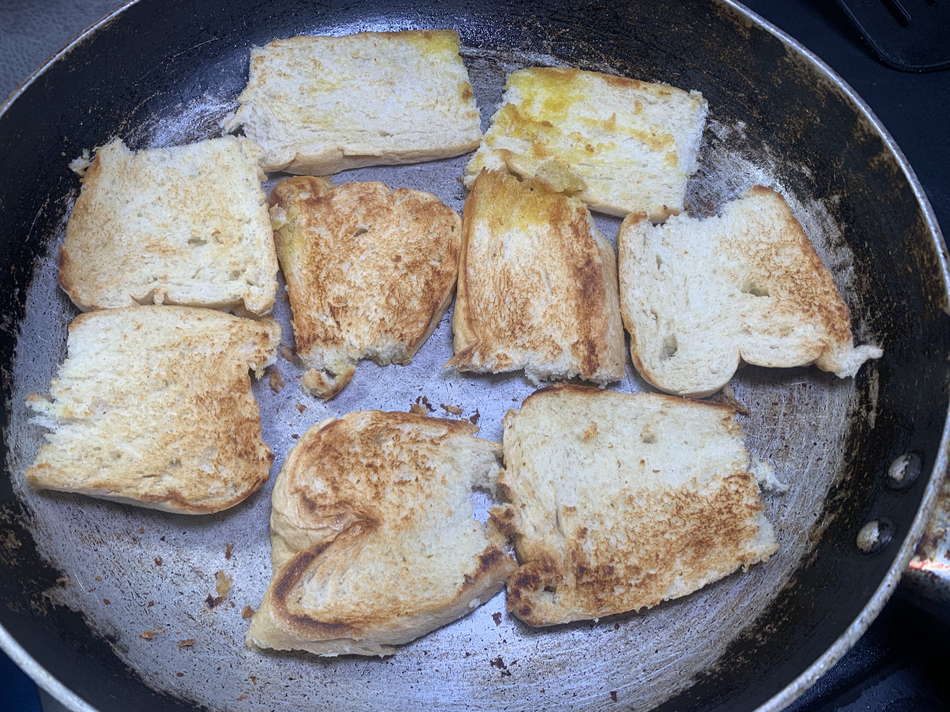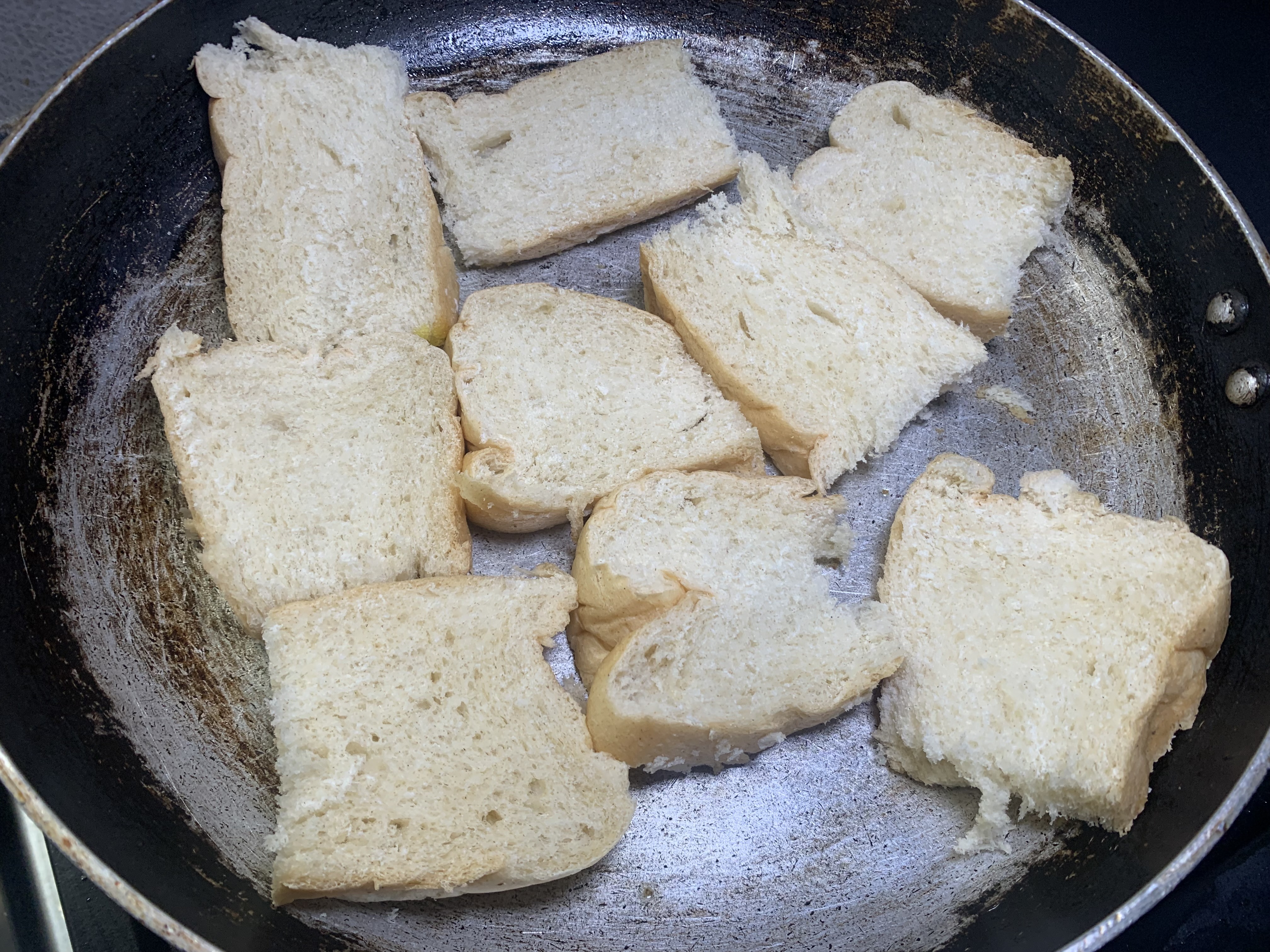 I started by toasting the bread ( it was sliced to my desired size and shape). After toasting, I kept it aside to cool.