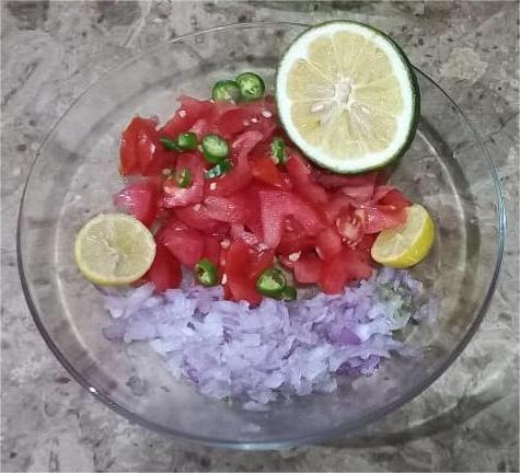 - Then put in it Chopped tomato pieces.