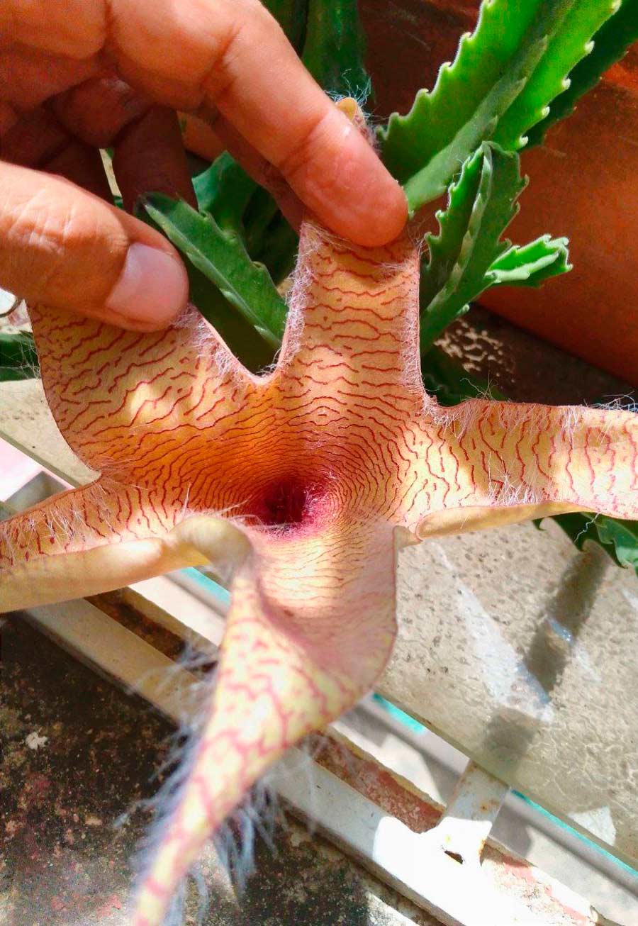 A few years ago I was at a friend's house and he showed me a cactus that was about to bloom. I stayed at his house and the next day a large flower similar to a flytrap sprouted. It was a spectacle of emotions to see it all open, distilling its pleasant perfume throughout the house.