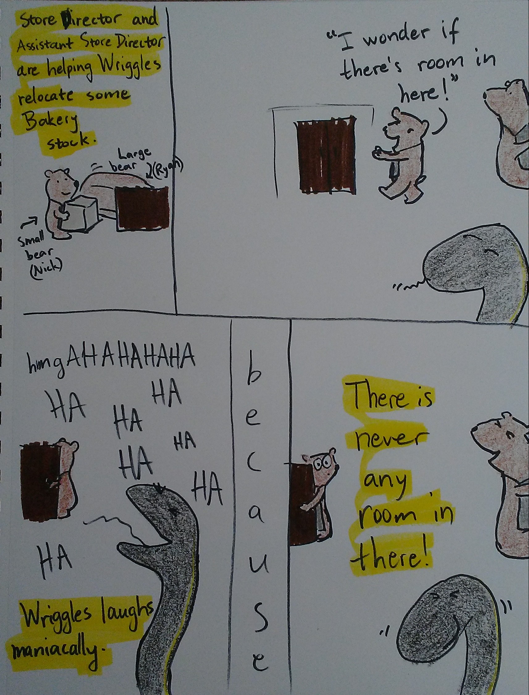 Grin and bear itribbonwriggles (49)in #wrigglestheribbonsnake • 7 years ago Ryan is no match for the contagion of Wriggles' maniacal laugh! #work #bakery #funny