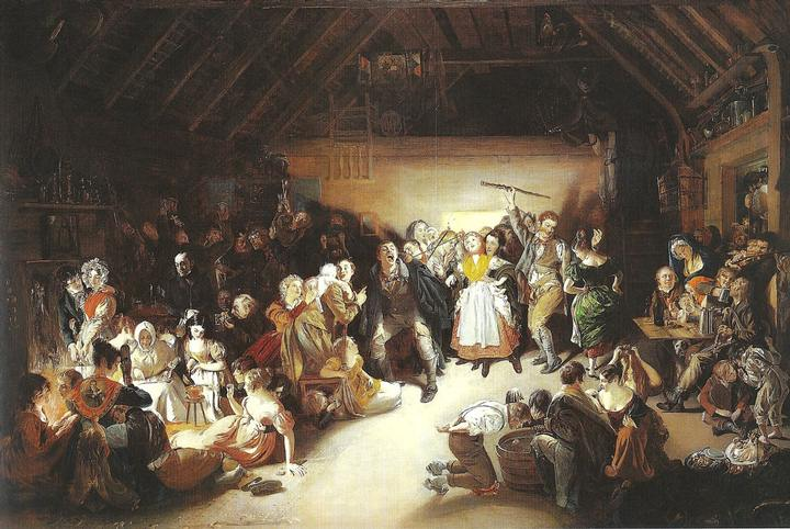 La noche anterior a esta fiesta principal de los celtas (contaban por noches en lugar de por días), toda la comunidad debía asistir a la reunión bajo la amenaza de extraviar la cordura si no lo hacía. Consistía en una asamblea en la que el debate sobre lo divino y humano era seguido de un festín interminable a base de cerdo y vino. La carne del animal para acceder a la inmortalidad, y la bebida fermentada, para alcanzar un estado de trance que facilitase la comunicación con los muertos sin el peligro de la posesión.