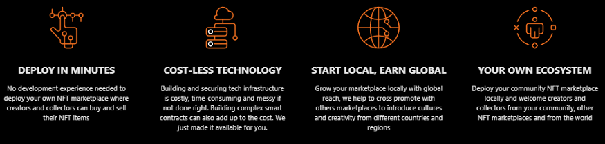 Apply in Minutes - No development experience required to implement your own NFT marketplace where makers and collectors can buy and sell their NFT items
