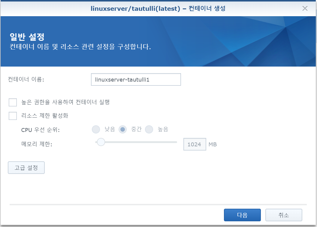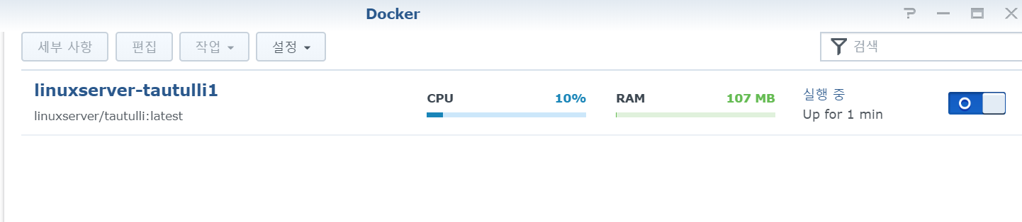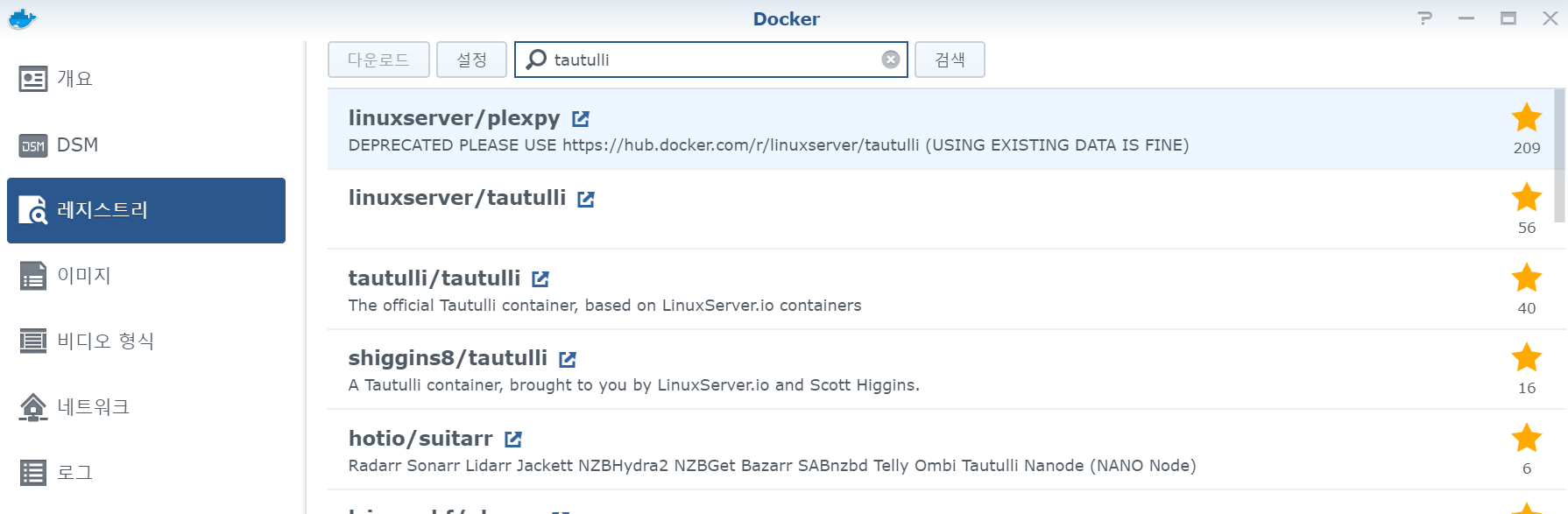 Docker → 레지스트리 메뉴에서 tautulli 를 검색합니다.
