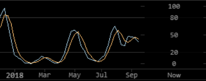 Looking at the stochastic RSI on the weekly charts shows that momentum is coiling into an increasingly tightening mid-level range – suggesting that the markets may be primed for a strong move in either direction.