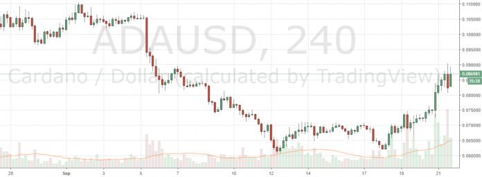 ADA gained 13% today – rallying from $0.076 to the current price area of roughly $0.086. Cardano is also trading for 0.00001300 BTC and is the ninth largest cryptocurrency with a market cap of roughly $2.19 billion.