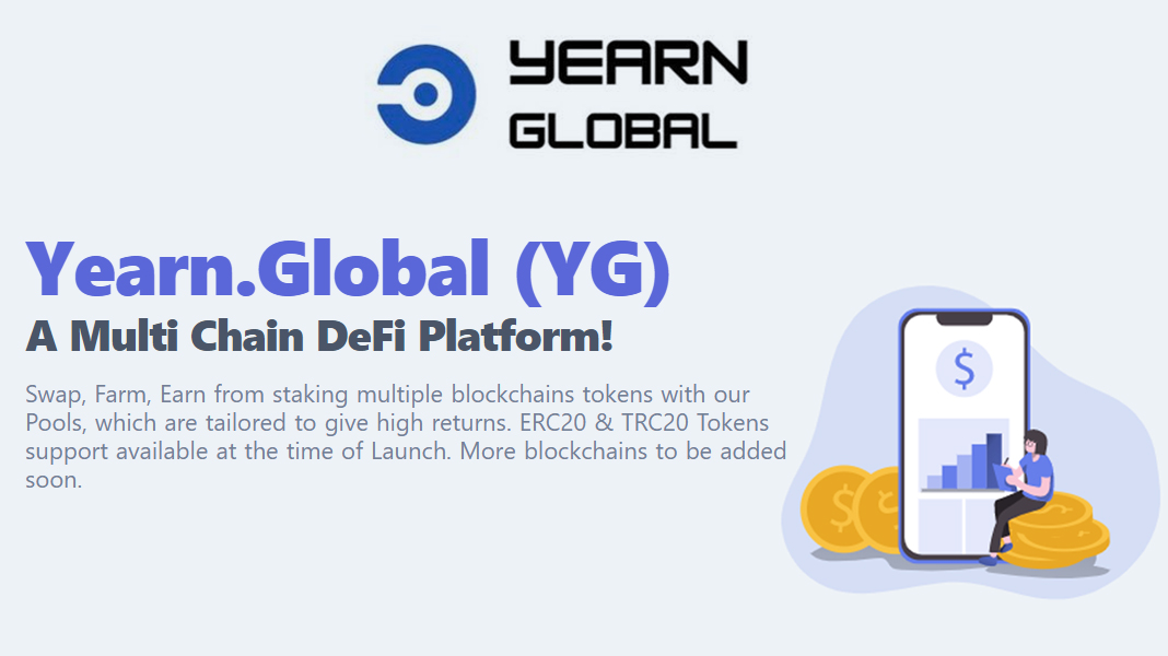 Yearn.Global (YG) is a protocol-independent definition that offers a cross-chain defi product to its users. Users can benefit from high yield pools on the YG platform designed to provide investors with a high APY. Unlike other DeFi platforms, YG offers DeFi Staking, Farming, Vaults, and Cross-chain Swaps on its single platform. YG will collect supply from Cross-Chain DEX liquidity providers to replenish its liquidity sources. Partnerships with major liquidity aggregators will allow users to exchange and trade various assets.