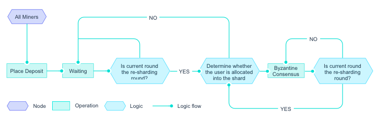 By utilizing the innovative POS+VRF miner selection mechanism, MultiVAC prevents miners with high stake deposits from dominating a shard with high voting power. In turn, this fully ensures that miner selection is democratic and fair, allowing ordinary miners to gain access to block production and enhancing the stability and safety of the network. MultiVAC employs a dynamic re-sharding mechanism to ensure system security. The system adjusts the combination of miners allocate to each shard every few minutes. As the composition of miners within each shard constantly changes, hacking a shard is no easier than hacking the entire network. Finally, MultiVAC assesses the transaction volume of each shard to make sure that the shard is balanced. If the transaction volume is too high within one shard, MultiVAC will dynamically split it into two independent shards, increasing its the transaction speed and ensuring that no part of the network is clogged for any length of time.