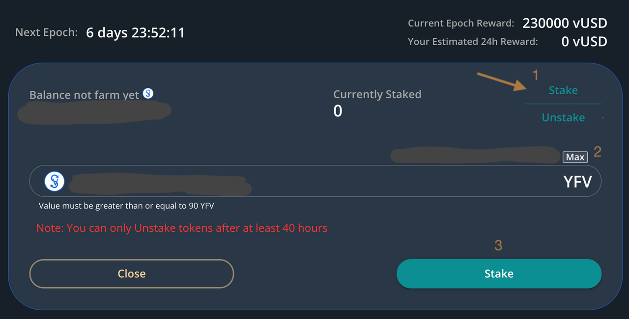 Step 4. Stake your YFV tokens